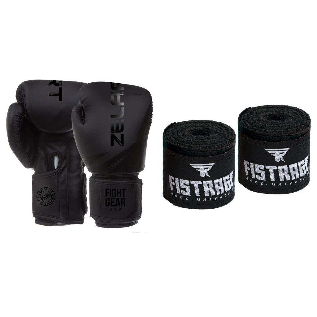 Перчатки боксерские кожаные черные FISTRAGE 8 -14 унций