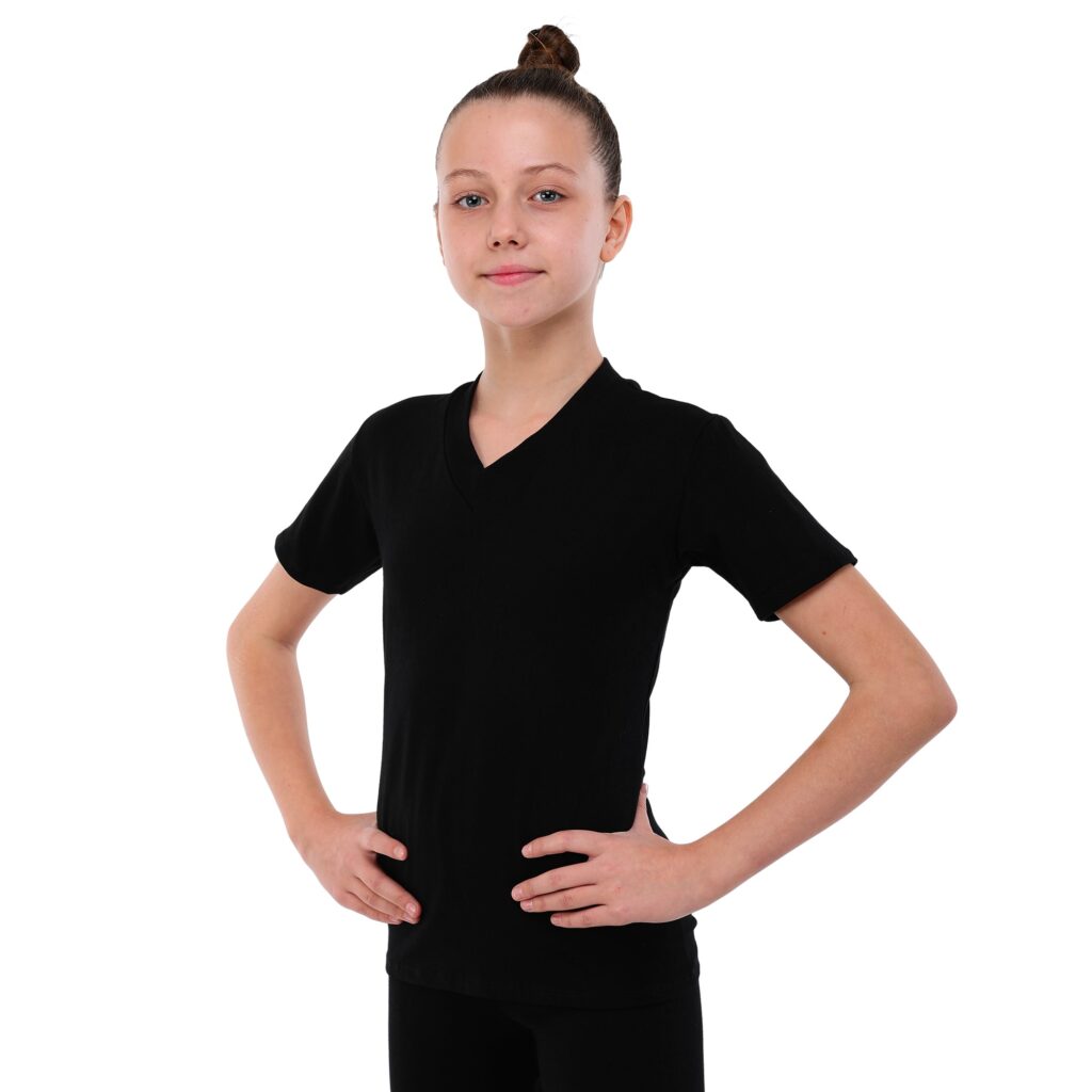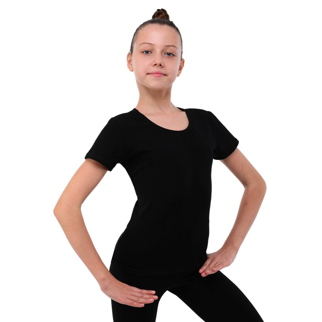 Майка для гимнастики и хореографии на широких бретелях из полиэстера ALEMA рост 110-160см черный