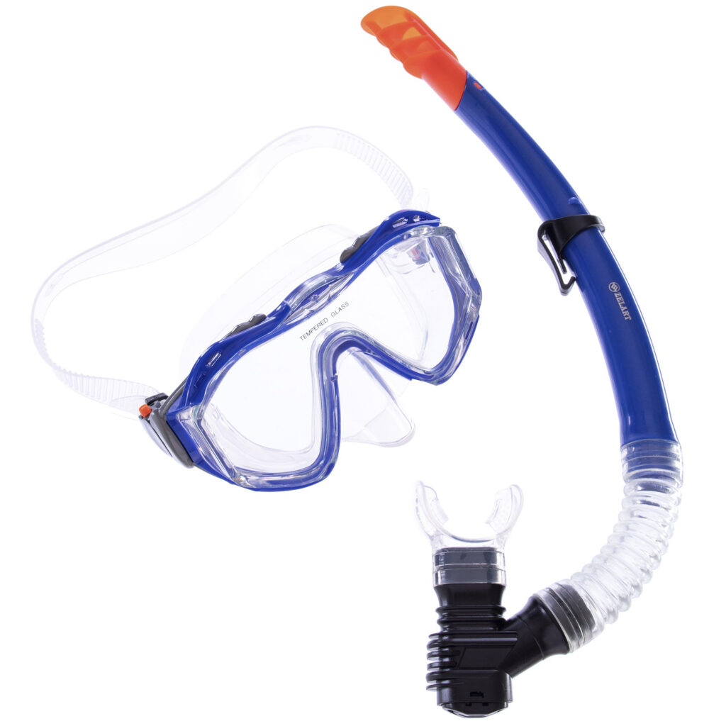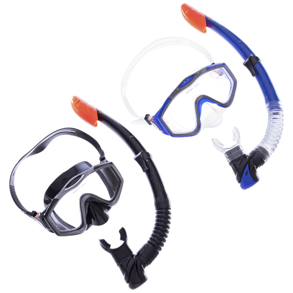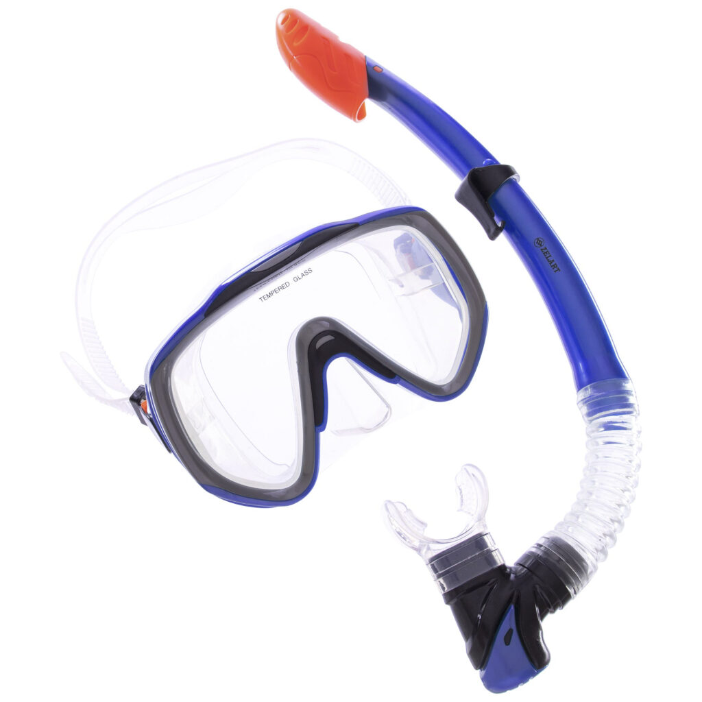 Набор для плавания маска с трубкой синий-черный-оранжевый