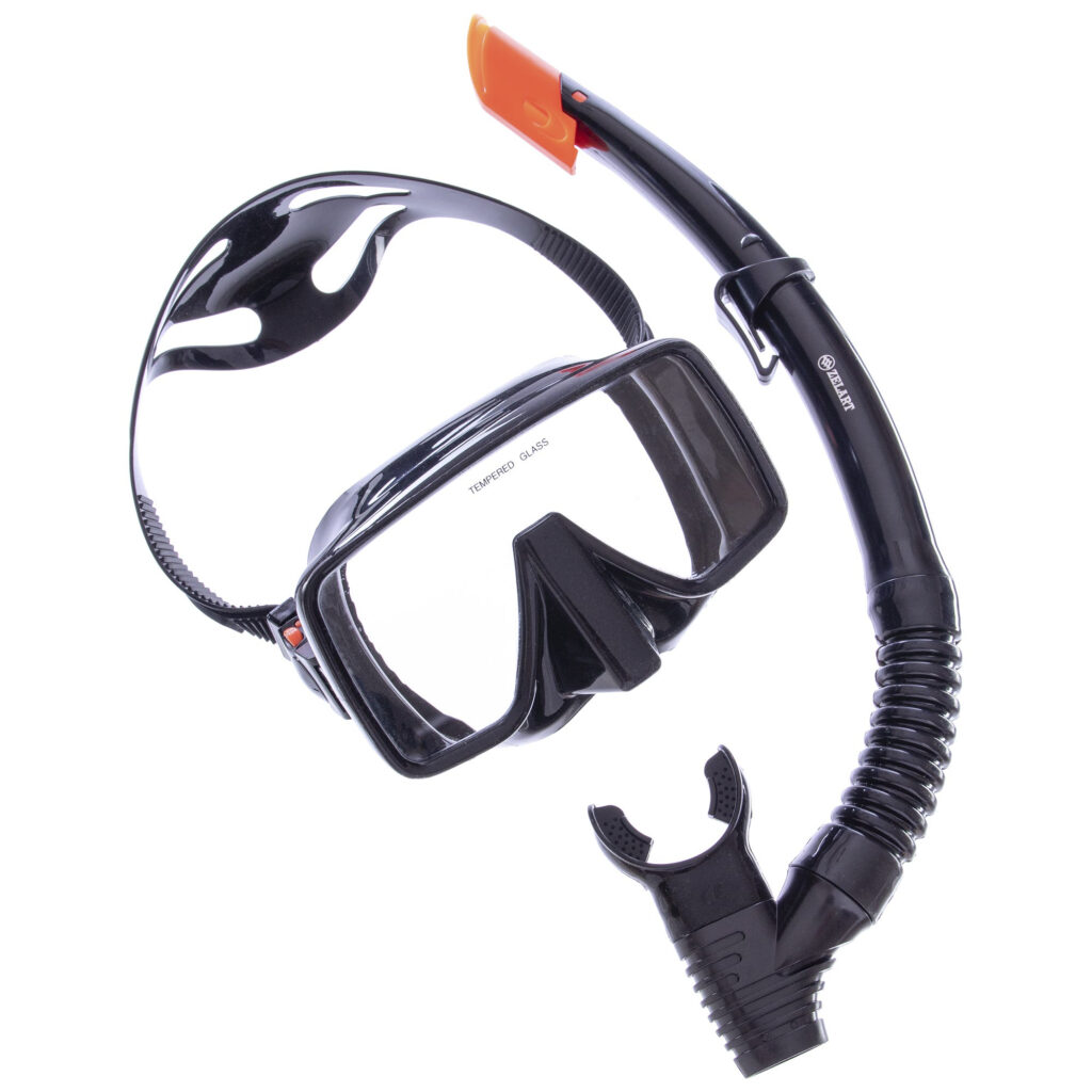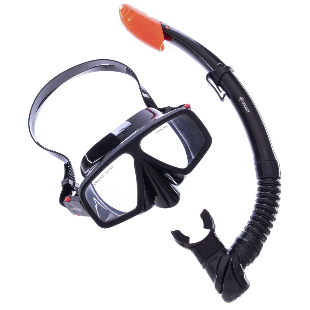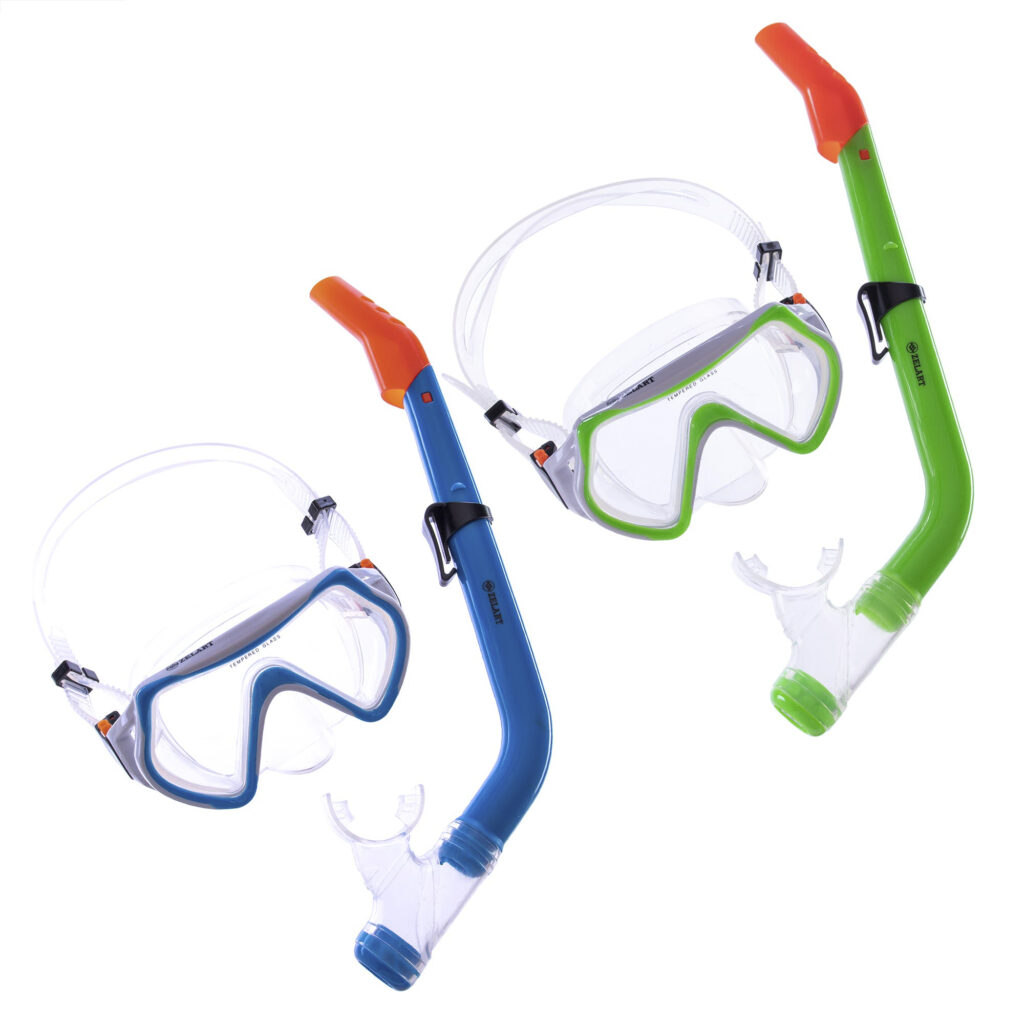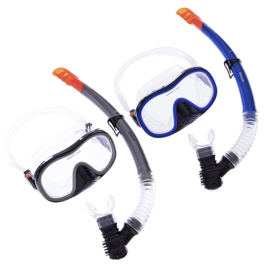 Набор для плавания маска с трубкой синий-черный-оранжевый