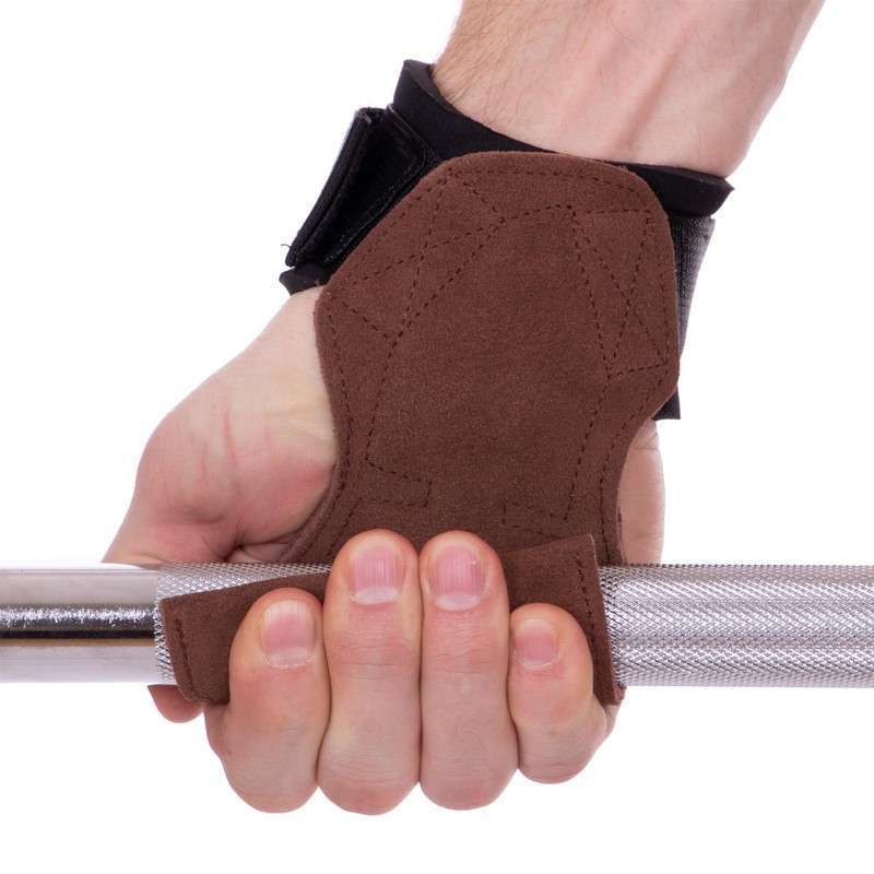 Накладки атлетические Грипад для WorkOut с напульсником черный-коричневый
