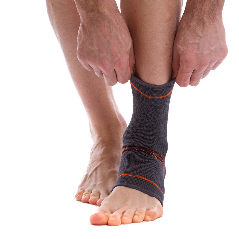 Бандаж на голеностоп эластичный SIBOTE размер S-XL 1шт серый-оранжевый