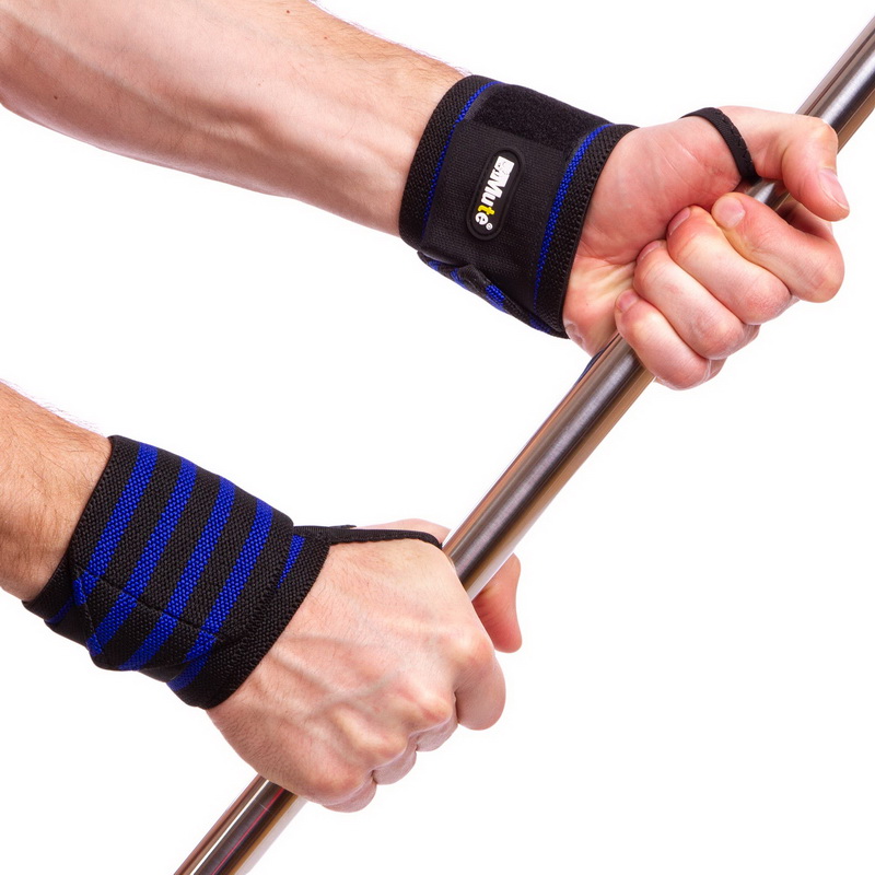 Кистевые бинты защищают мышцы и сухожилья предплечий при работе с большими весами. Аксессуар фиксируется на большом пальце, что позволяет качественнее затянуть бинт. Его можно использовать для выполнения тяги или жима лежа.