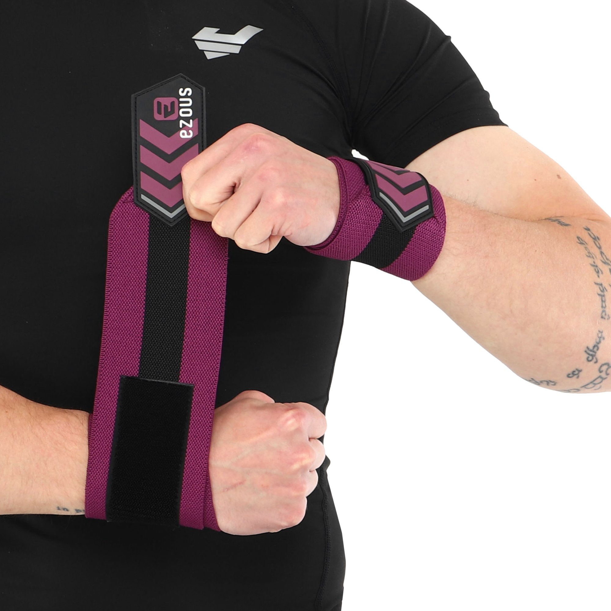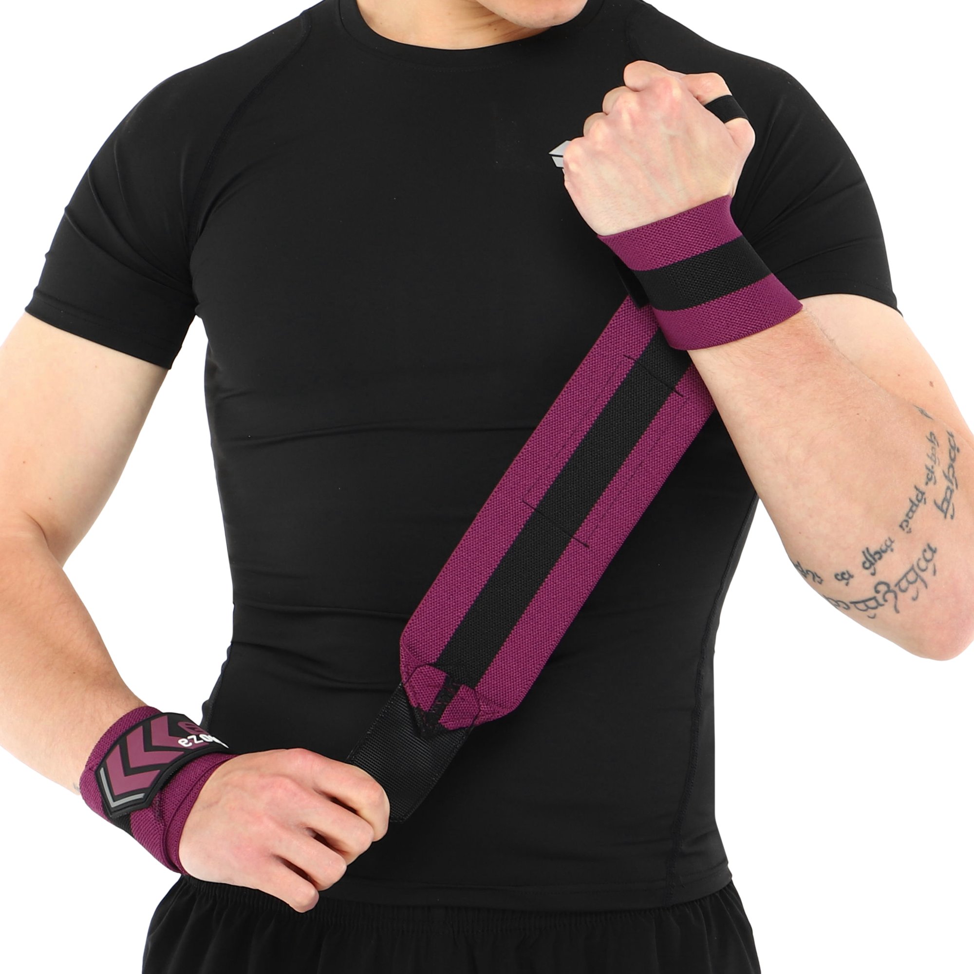 Кистевые бинты для жима Strong Wrist Wraps Ezous — это качественный спортивный аксессуар для силовых тренировок, а именно — работы со свободным весом. Бинты представляют собой две полоски ткани средней жесткости. На одном конце расположены удобные петли для большого пальца. Петля позволяют спортсмену быстро и без сторонней помощи намотать изделие на кисти. Для фиксации предусмотрена липучка. Свободный край бинта заканчивается узким латексным лоскутом, который плотно прилегает к бинту и не мешает выполнять упражнения. Материал бинтов очень прочный и долговечный, устойчив к влиянию влаги и регулярным нагрузкам.