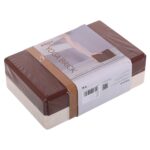 Внешне блок для йоги напоминает кирпичик. Он имеет длину 23 см, ширину — 15 см. Практически сразу после начала занятия блок приобретает температуру близкую к температуре тела человека, он не ощущается слишком холодным. Материал устойчив к износу и не меняет свои свойства даже при регулярной длительной эксплуатации.