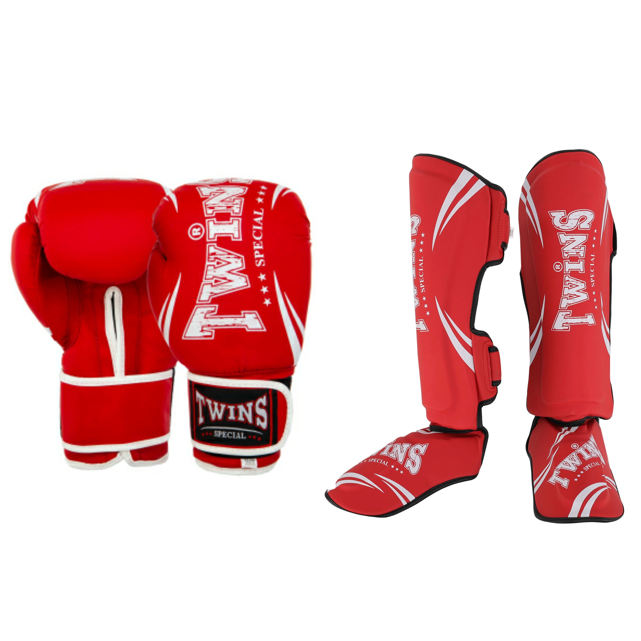 Бойцовский комплект TWINS красный перчатки и защита голени
