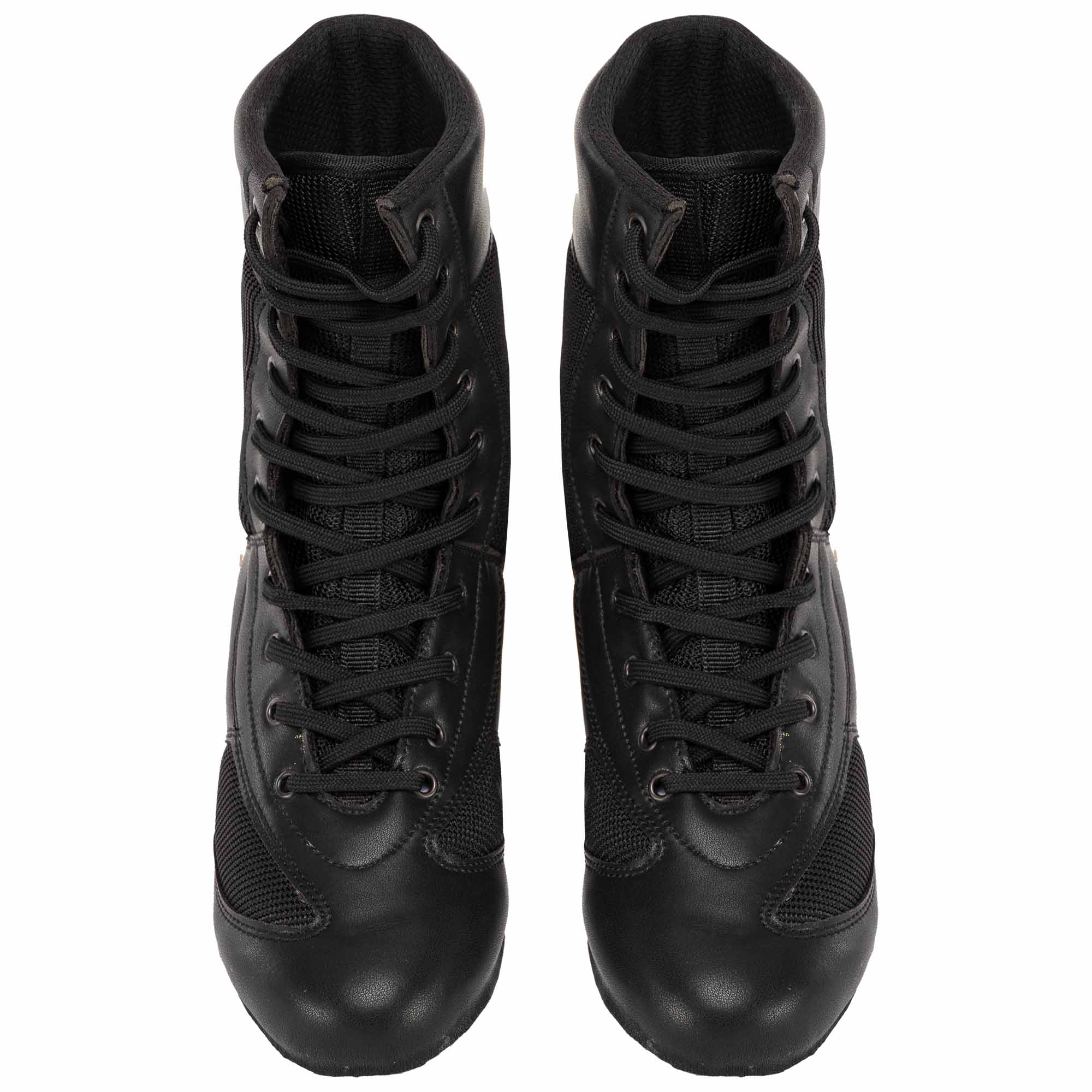 Надежную фиксацию на стопе обеспечивает шнуровка, которая располагается и на своде стопы, и на голени. Нога не ерзает в обуви и сидит плотно. Носок и пятка боксерок усиленны. Это защищает обувь от преждевременного износа.