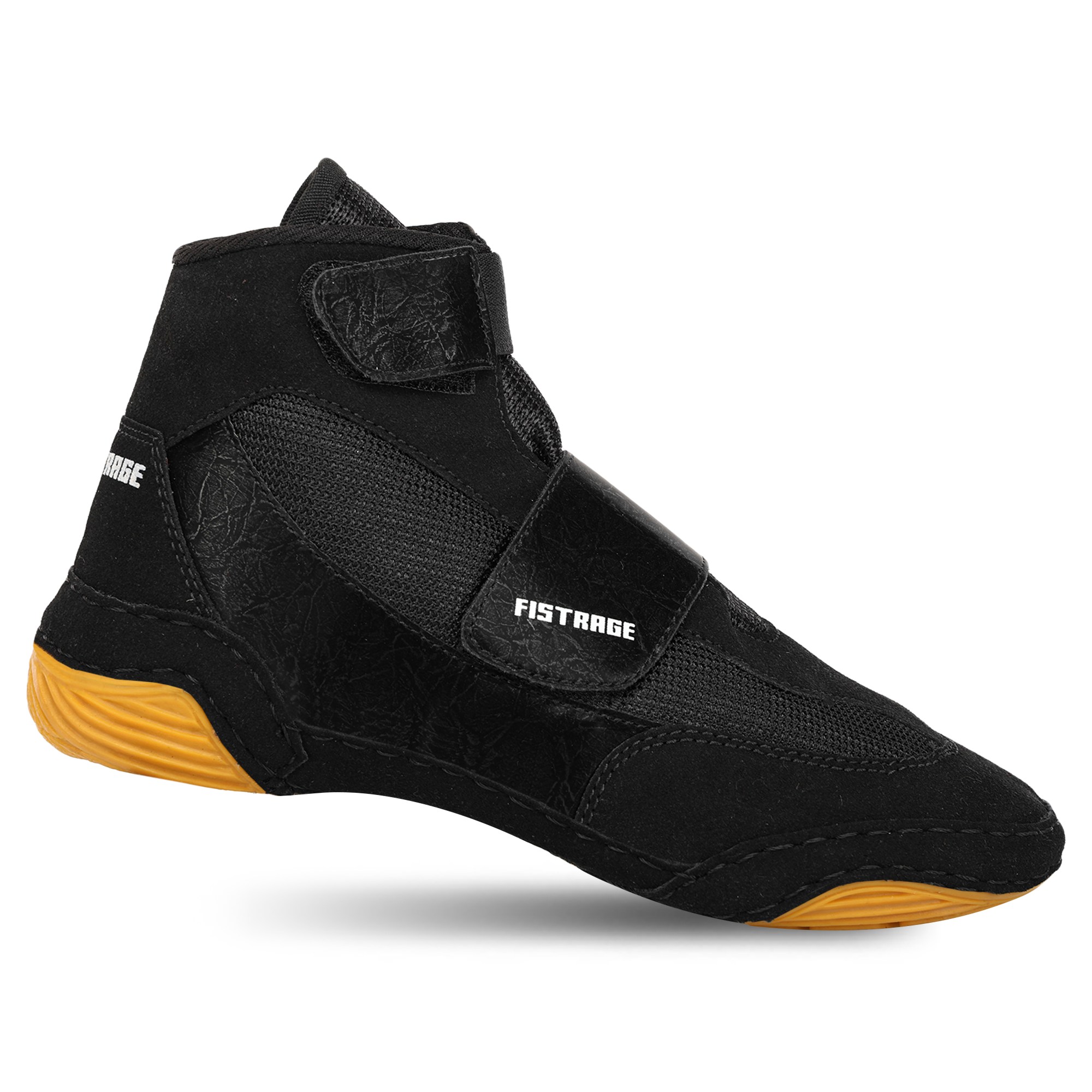 Если ваш ребёнок занимается борьбой, то, чтобы обезопасить его от травм на тренировках, стоит использовать специальную обувь — борцовки. FISTRAGE — это борцовки, изготовленные из замши и полиэстера с подошвой из полиуретана. Верх имеет высокую прочность, не препятствует естественному охлаждению ног и при этом обеспечивает максимальную подвижность стоп. Обувь не сковывает движения, но при этом стабилизирует голеностопный сустав. Полиуретановая подошва имеет отличное сцепление с покрытием и препятствует скольжению во время выполнения различных приёмов. На подошве присутствует невысокий протектор. Обувь фиксируется на ногах с помощью липучки.