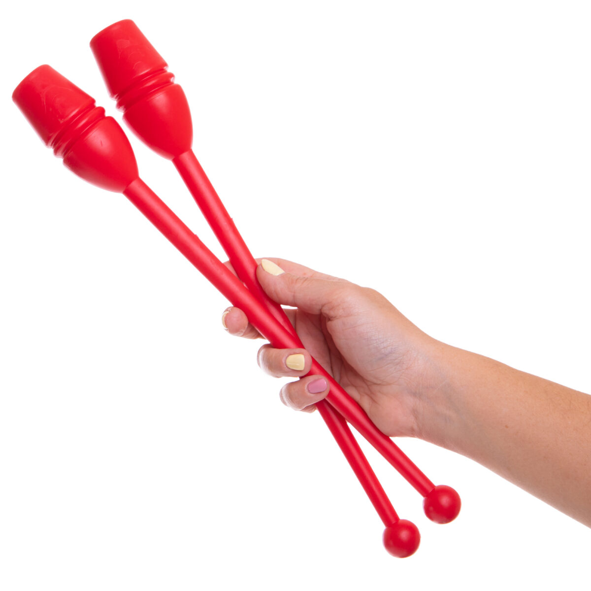 Форма булав традиционная – длинная ручка с утолщением (головкой) на конце. Шарики на ручках предотвращают выскальзывание булавы после броска. Производство булав осуществляется методом формового литья под давлением. За счет этого булавы в паре тщательно откалиброваны и имеют одинаковый вес.