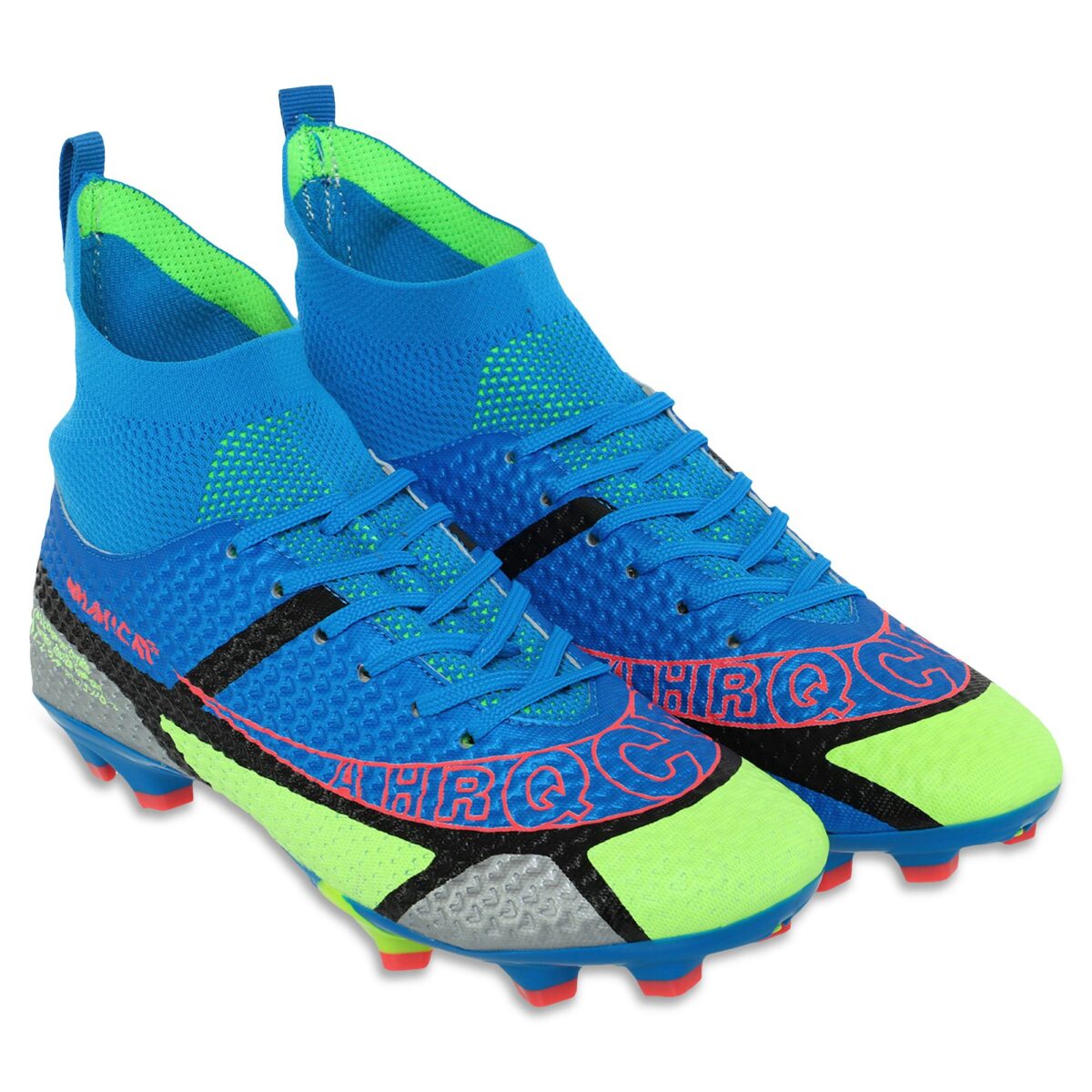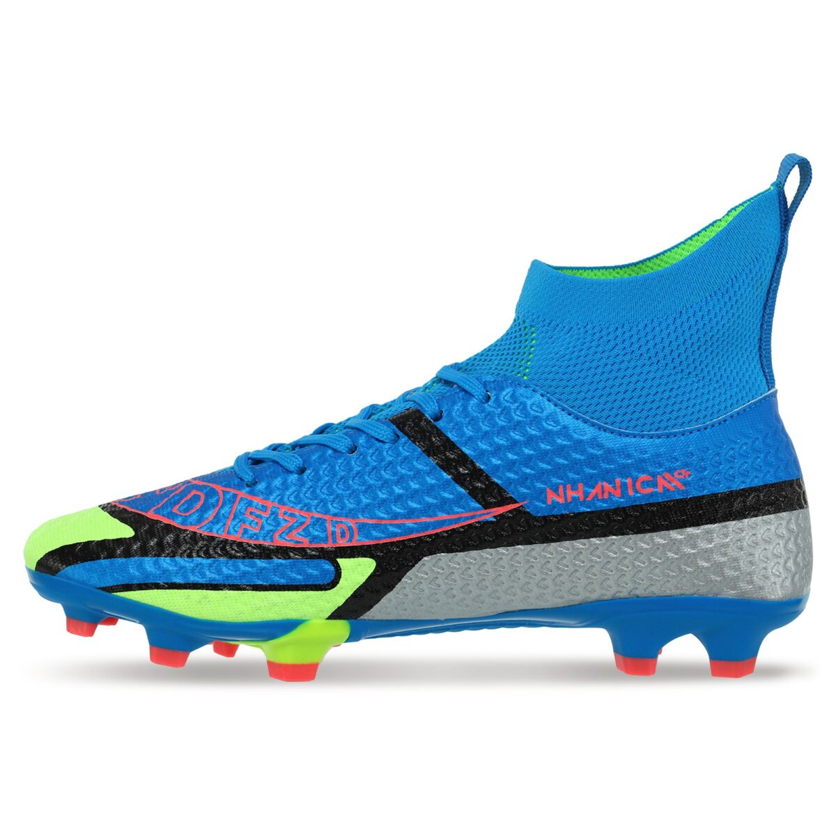 Бутсы футбольные детские с носком CR7 размер 36-40 синий-салатовый