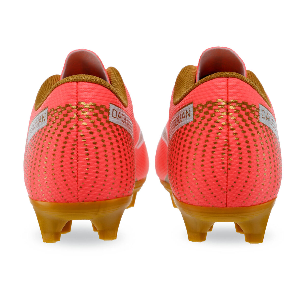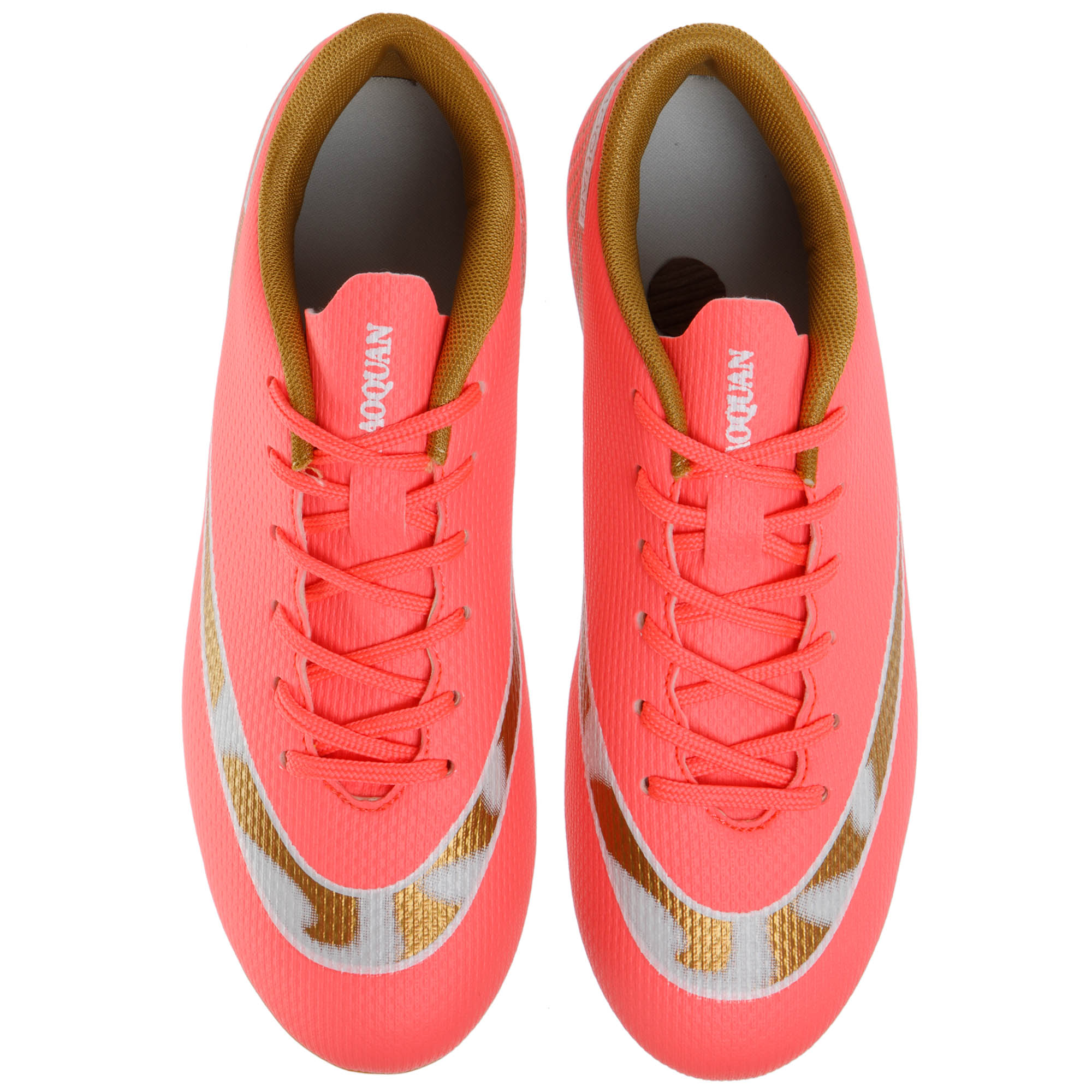 Футбольные бутсы DAOQUAN изготовлены из прочных синтетических материалов, которые не привередливы к условиям эксплуатации. TPU подошва не ломается в месте изгиба. Шипы на подошве улучшают сцепление с травяным покрытием поля и позволяют выполнять маневры и ускорения.