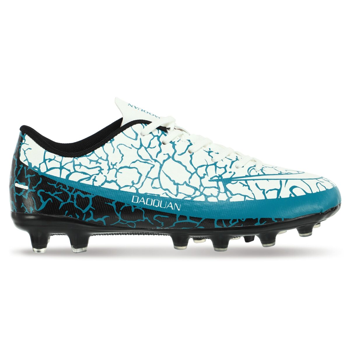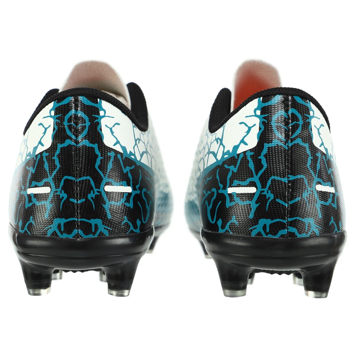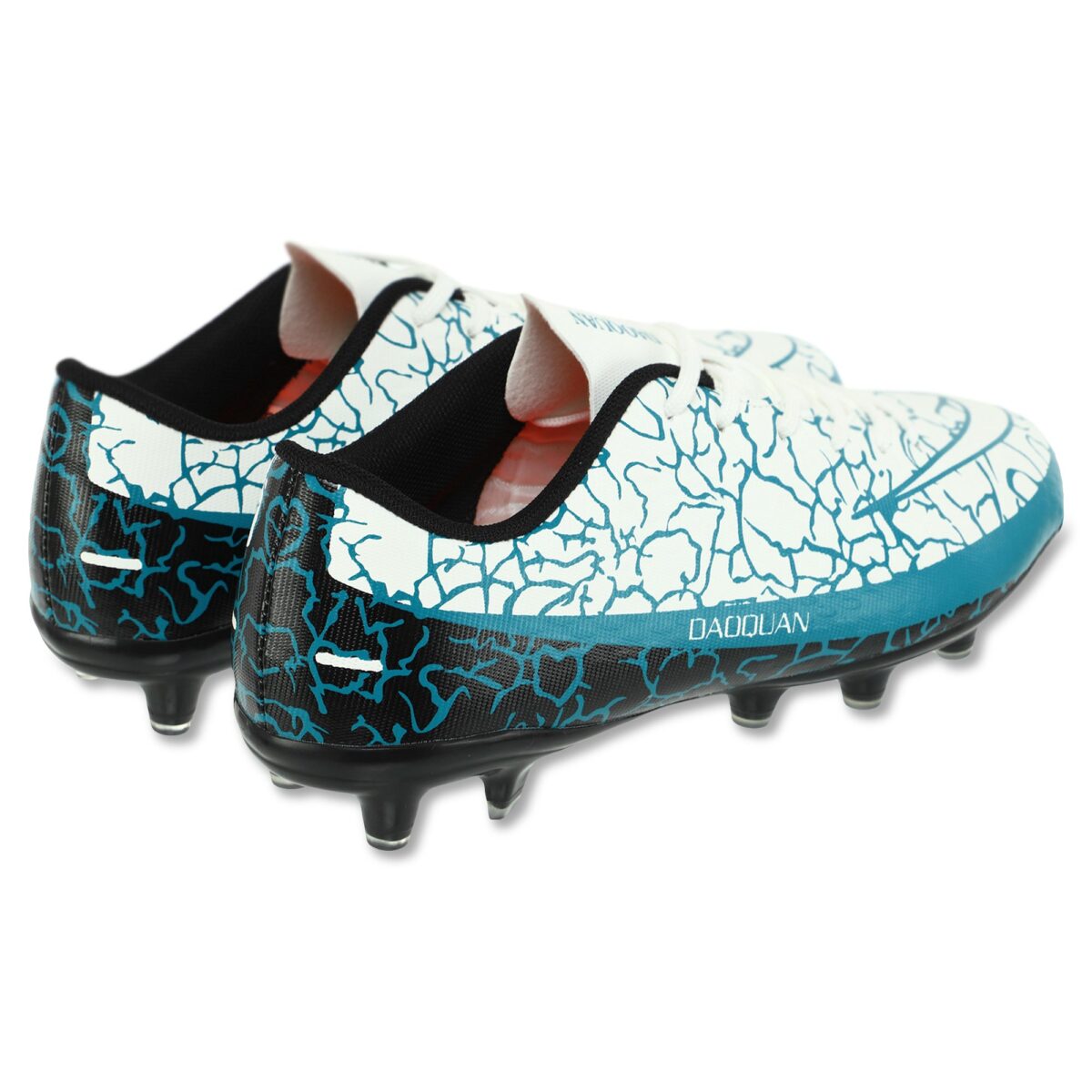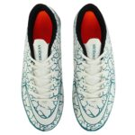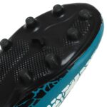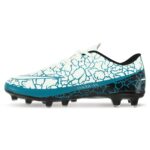Детская футбольная обувь имеет яркий дизайн. Она фиксируется на ногах с помощью шнурков. Длинная шнуровка позволяет отрегулировать по посадке обувь на каждой ноге. Бутсы изготовлены из легкого и прочного материала. Благодаря этому они не перегревают ноги. Внутри бутс использован материал, который впитывает и отводит влагу от ног. Это позволяет чувствовать себя комфортно во время активных тренировок и игр.