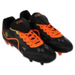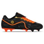 Подошва выполнена из термополиуретана (TPU), который оказывает отличную гибкость и амортизацию. Материал известен своей прочностью и устойчивостью к износу, что особенно важно для футбольных бутс, подвергающихся значительным нагрузкам. Подошва имеет продуманную конструкцию шипов, которые равномерно распределены по всей ее поверхности. Это способствует надежному сцеплению с натуральным газоном и отличной устойчивости на травяных покрытиях. Шипы размещены в стратегически важных точках для обеспечения оптимального сцепления и минимизации риска скольжения, что позволяет игрокам уверенно выполнять резкие повороты и быстрые движения. Фиксируется модель с помощью шнурков, что позволяет индивидуально подстраивать их под форму стопы.