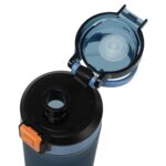 Бутылка оснащена надежным типом закрытия на защелке, который предотвращает случайное проливание жидкости. Это делает её идеальной для использования в условиях повышенной активности. Кроме того, защелка легко открывается одной рукой, что добавляет удобства в использовании.
