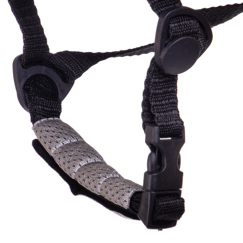 Для фиксации на голове в конструкции предусмотрен ремень на подбородок, длину короткого можно регулировать. Ремень застегивается на пластиковую полуавтоматическую застежку. Шлем можно отрегулировать по обхвату.