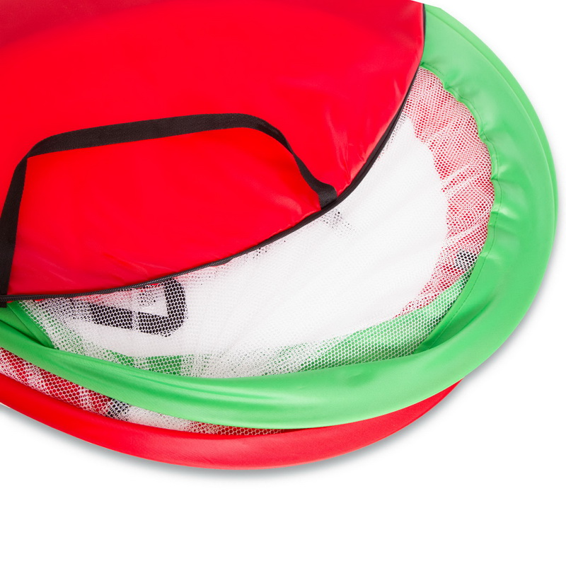 Складные ворота можно использовать для тренировки точности ударов в профессиональном и любительском футболе. Ворота укомплектованы сеткой. Конструкция состоит из двух ребер жесткости, которые вставляются в специальное пластиковое крепление, и сетки.