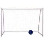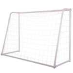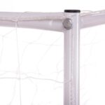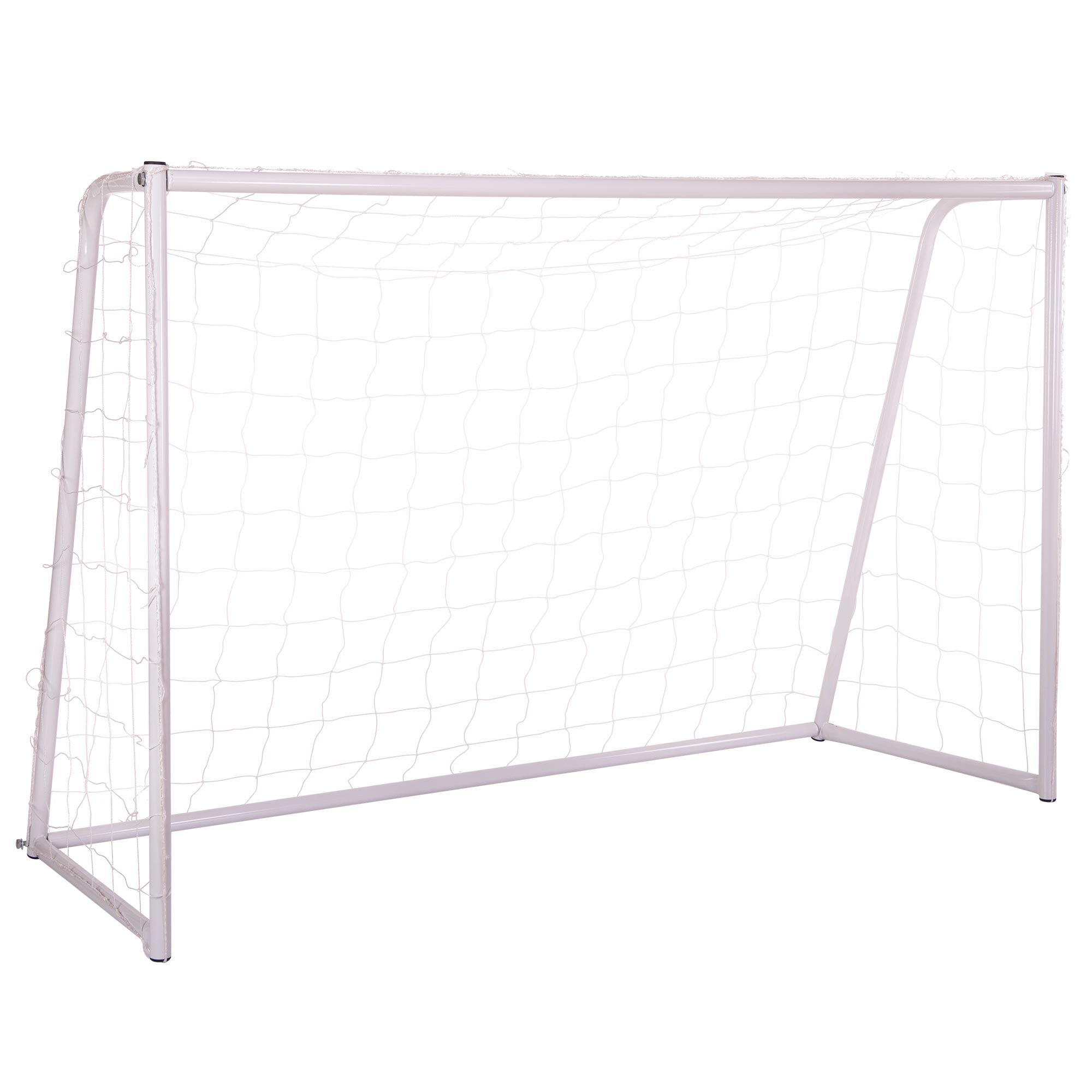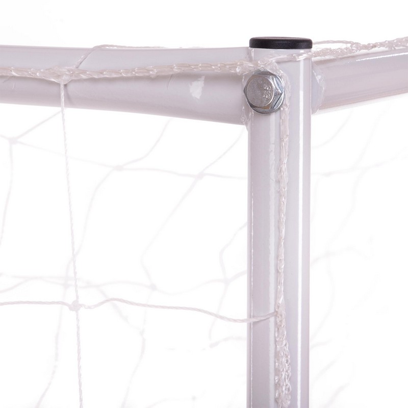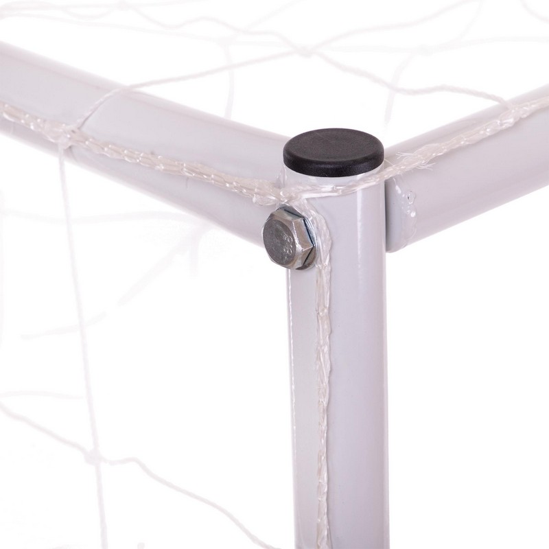 Футбольные ворота изготовлены из металлических труб. Ворота укомплектованы сеткой белого цвета. Сетка изготовлена из полиэстера. Она не повреждает мяч, устойчива к воздействию влаги и прямых солнечных лучей.