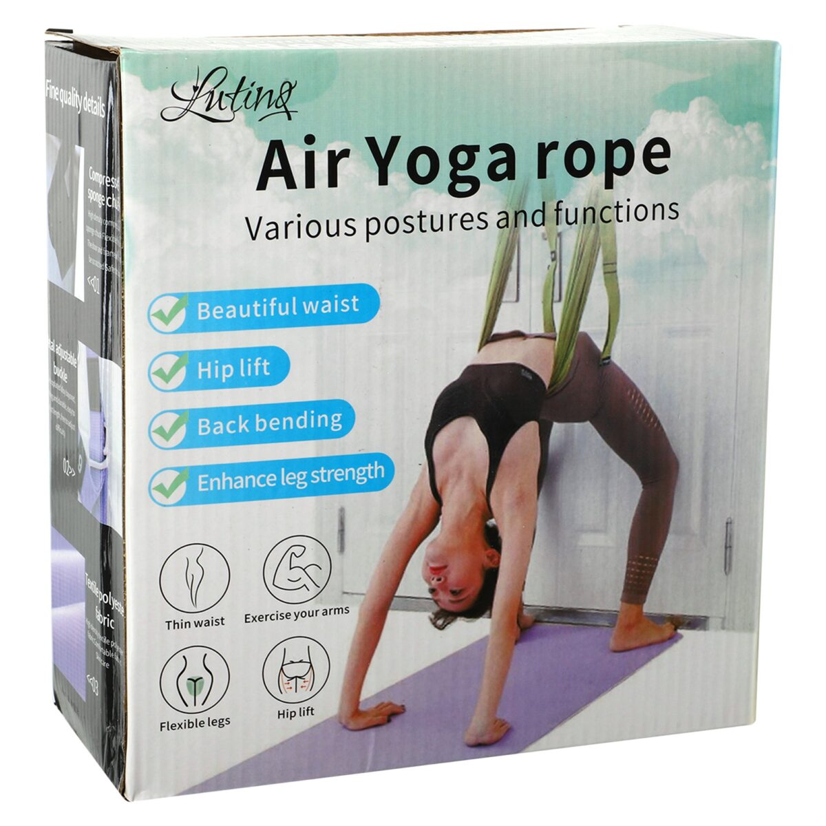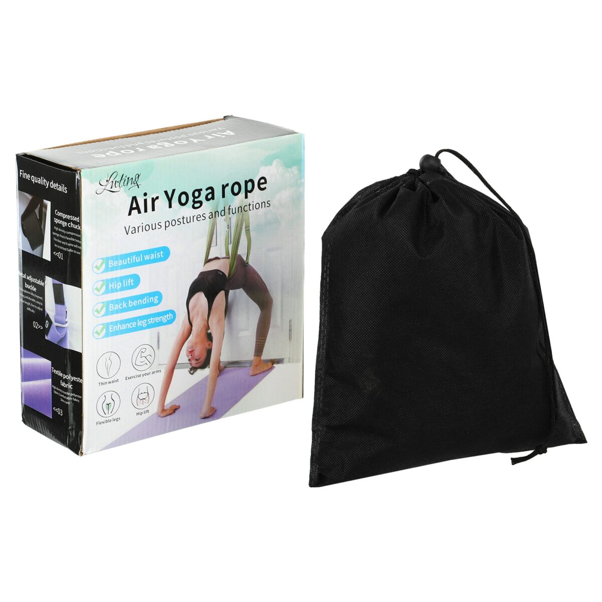 Гамак для йоги Air Yoga rope Lutinq предназначен для проведения аэро йоги, практики растяжек и укрепления всего тела. Это идеальное решение для тех, кто ищет способ совмещения физической активности с отдыхом, создавая уникальные ощущения от упражнений.