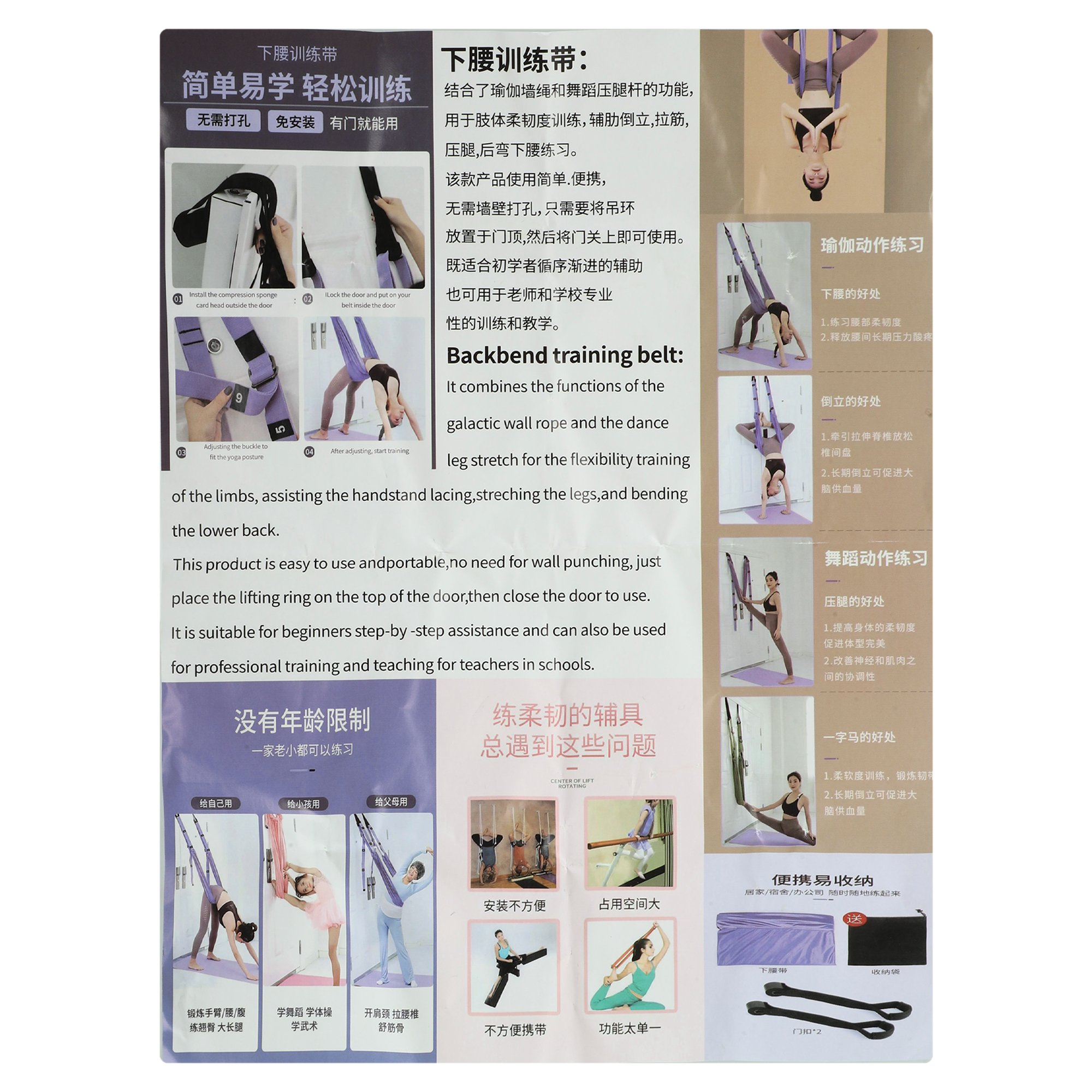 Удобно крепится к дверному проему с помощью дверного якоря, что делает его легко устанавливаемым в домашних условиях. Таким образом, его можно использовать не только в йога-студиях, но и в любом месте, где есть подходящий дверной проем.
