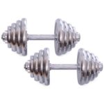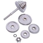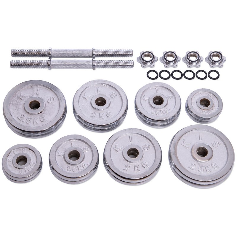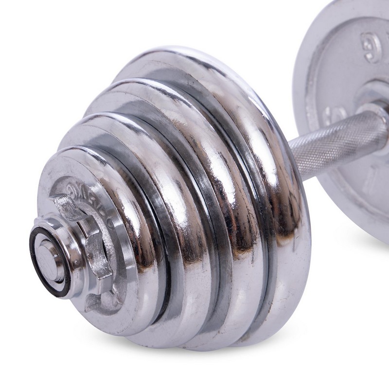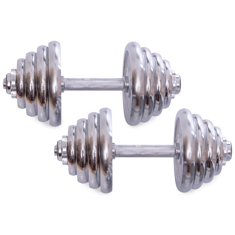 Гантели изготовлены из высококачественной хромированной стали и имеют стильный, эстетически привлекательный дизайн. Комплект включает в себя два грифа, два замка и набор весовых блинов. Для обеспечения максимального комфорта и безопасности тренировок на центральную часть грифов (область захвата) нанесены насечки, что предотвращает скольжение ладони. В то же время звездообразные замки (гайки Вейдера) позволяют быстро собрать/разобрать гантели и обеспечивают надёжную фиксацию блинов – они не болтаются и тем более не могут упасть.