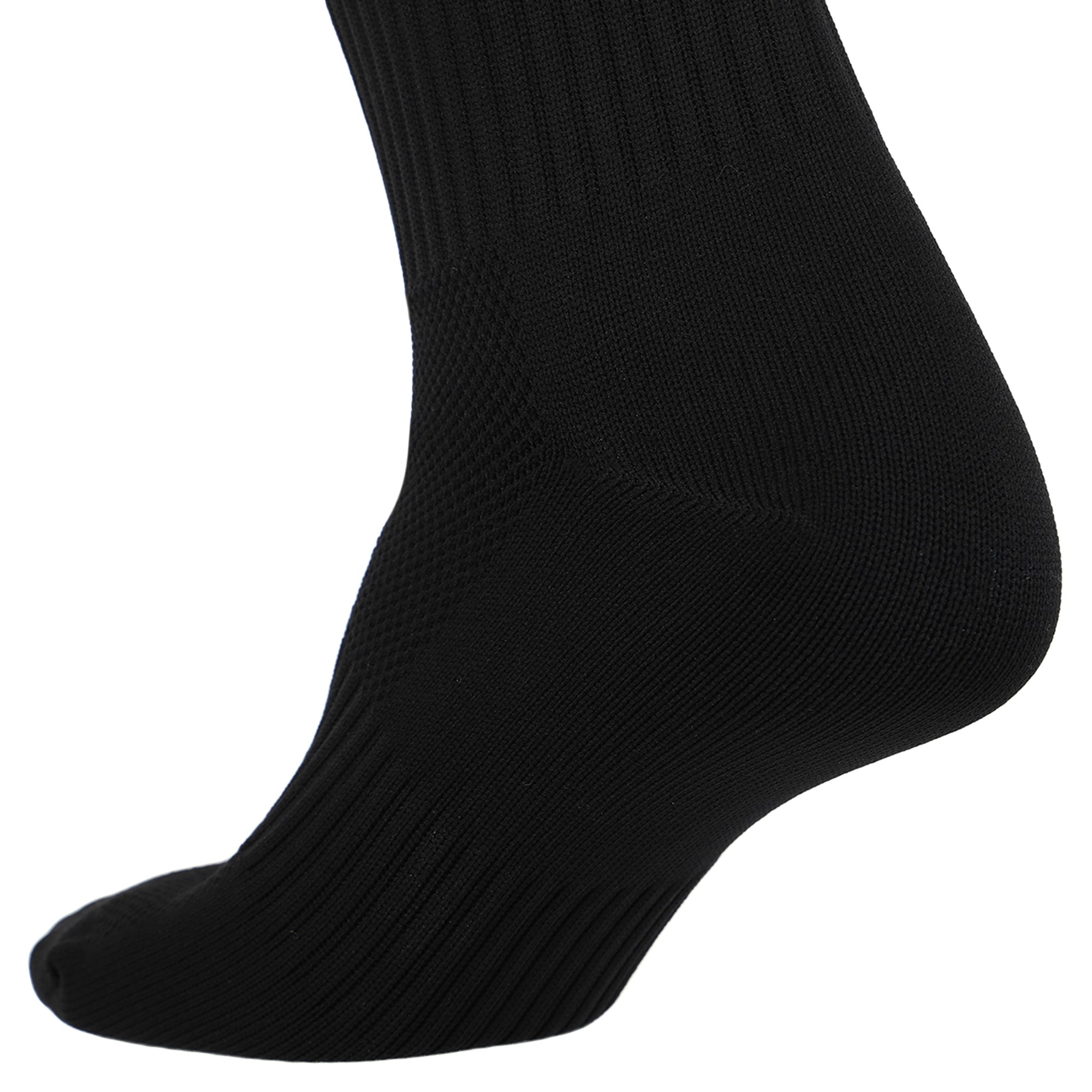 Эластичные гетры изготовлены из устойчивой к износу ткани. Ткань пропитана антибактериальным составом, который препятствует появлению неприятного запаха. Спортивный аксессуар обеспечивает дополнительную защиту щиколотки.