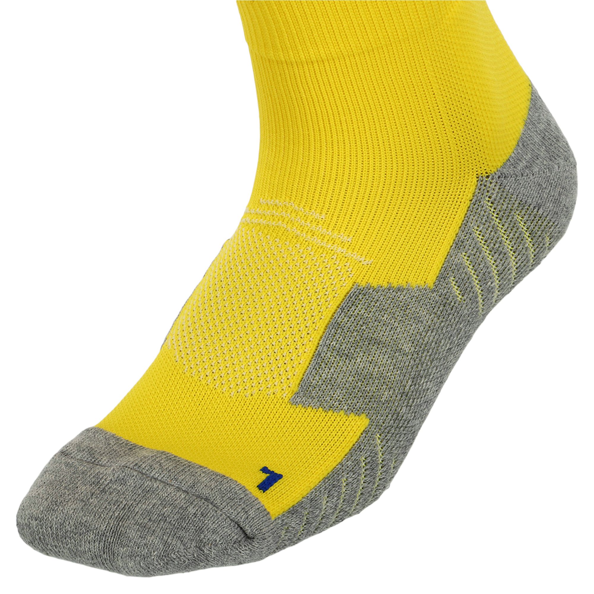 Гетры имеют анатомический крой до колена, надежно защищают ноги игрока от травм и выполняют компрессионную поддержку мышц. Плотную посадку обеспечивают эластичные вставки на подошве и своде стопы. Широкие резинки для фиксации не сдавливают ногу. Тонкие, еле ощутимые швы на носках гетр обеспечивают комфорт в носке и плотное прилегание стопы к кроссовкам.
