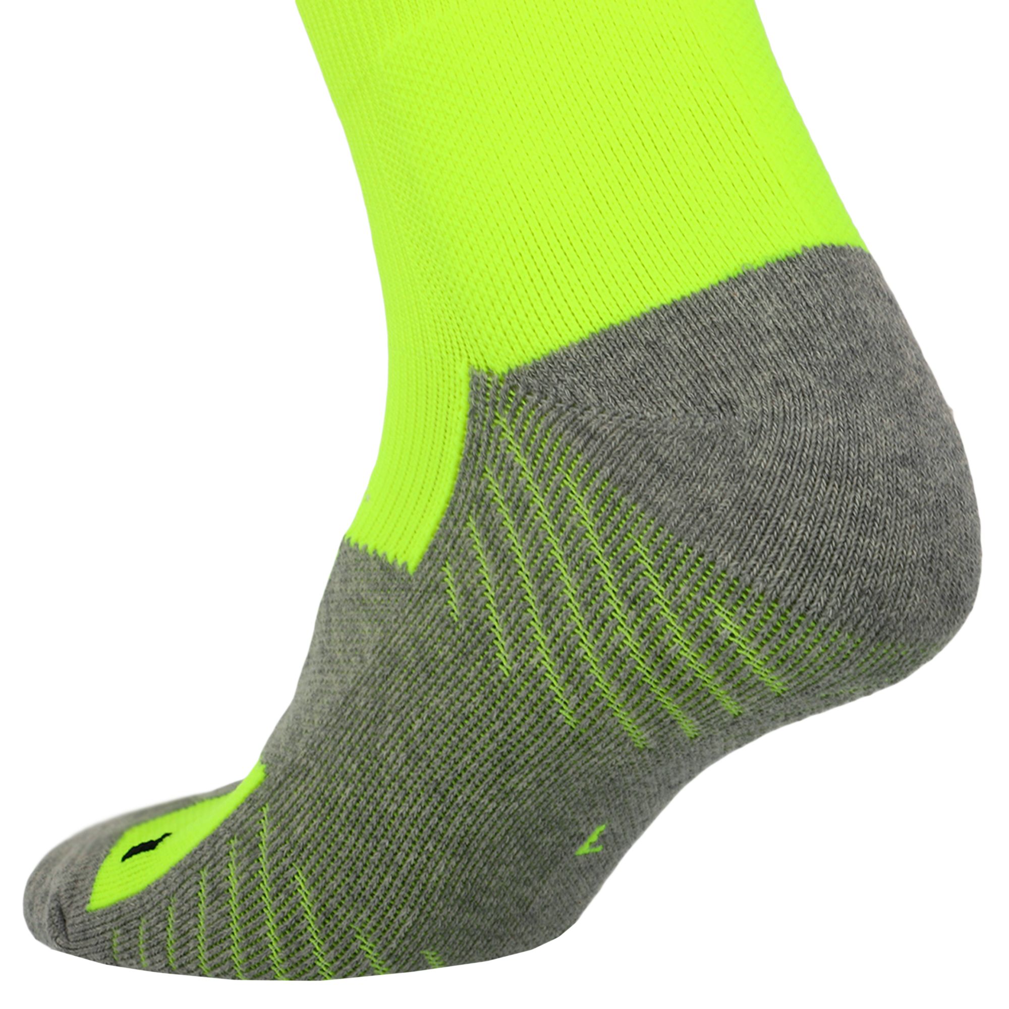 Гетры имеют анатомический крой до колена, надежно защищают ноги игрока от травм и выполняют компрессионную поддержку мышц. Плотную посадку обеспечивают эластичные вставки на подошве и своде стопы. Широкие резинки для фиксации не сдавливают ногу. Тонкие, еле ощутимые швы на носках гетр обеспечивают комфорт в носке и плотное прилегание стопы к кроссовкам.
