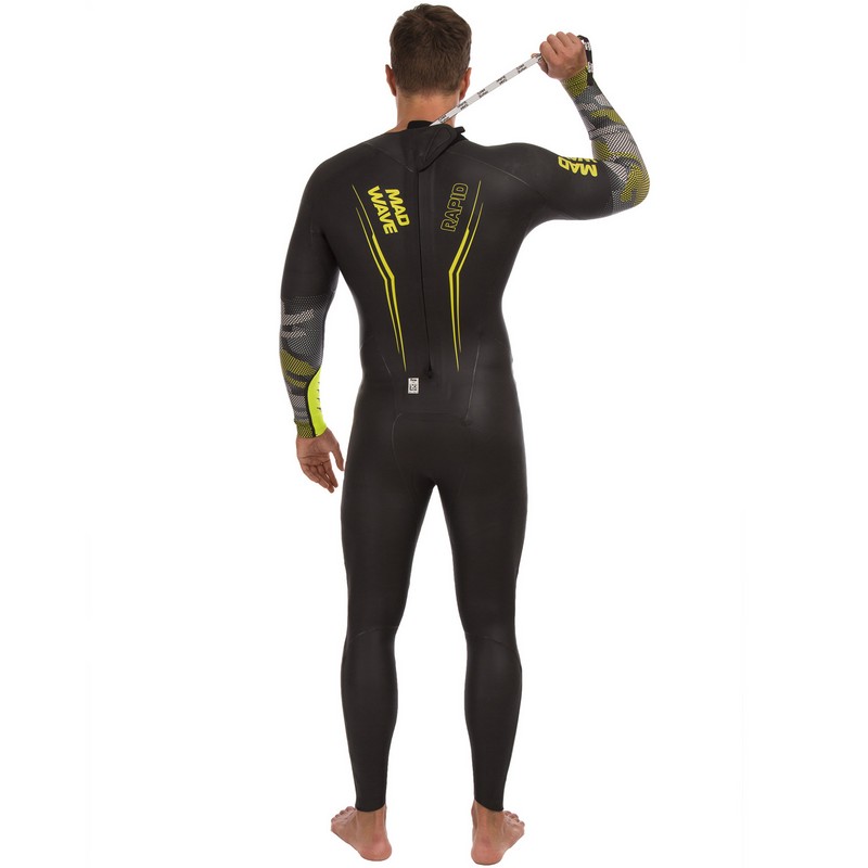 Гидрокостюм для триатлона RAPID — профессиональное решение для тренировок и соревнований по триатлону и плаванию на открытой воде. Благодаря многоуровневой структуре, ткань MAD WAVE SHEICO 3.0 NEOPRENE S-TYPE сочетает в себе легкость, эластичность и высочайшую прочность, позволяя сохранять идеальную плавучесть, а также обеспечивать эффективную терморегуляцию во время заплыва. Технология защиты от промокания GLIDESKIN позволяет верхнему слою ткани впитывать наименьшее количество влаги. Эластичная конструкция вставок на запястьях SHEICO X-WRIST, выполненная из ультрапрочного материала, а также молния YKK ZIPPER (Япония) с комфортным доступом для расстегивания одной рукой, позволят быстро снять гидрокостюм и не потерять ни секунды на периодах T1.