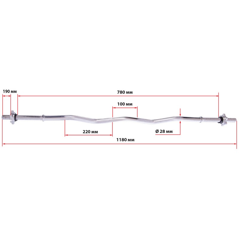 Металлический изогнутый гриф для штанги можно использовать во время силовых тренировок на руки. Благодаря форме грифа он отлично подойдёт как для упражнений на трицепсы, так и для подъёмов на бицепсы. Пользователь может изменять угол захвата, меняя этим самым тип нагрузки и включая в работу дополнительные мышцы. Гриф имеет небольшой вес, он подойдёт для мужчин и женщин и может использоваться как в домашних тренировках, так и в коммерческом тренажёрном зале.