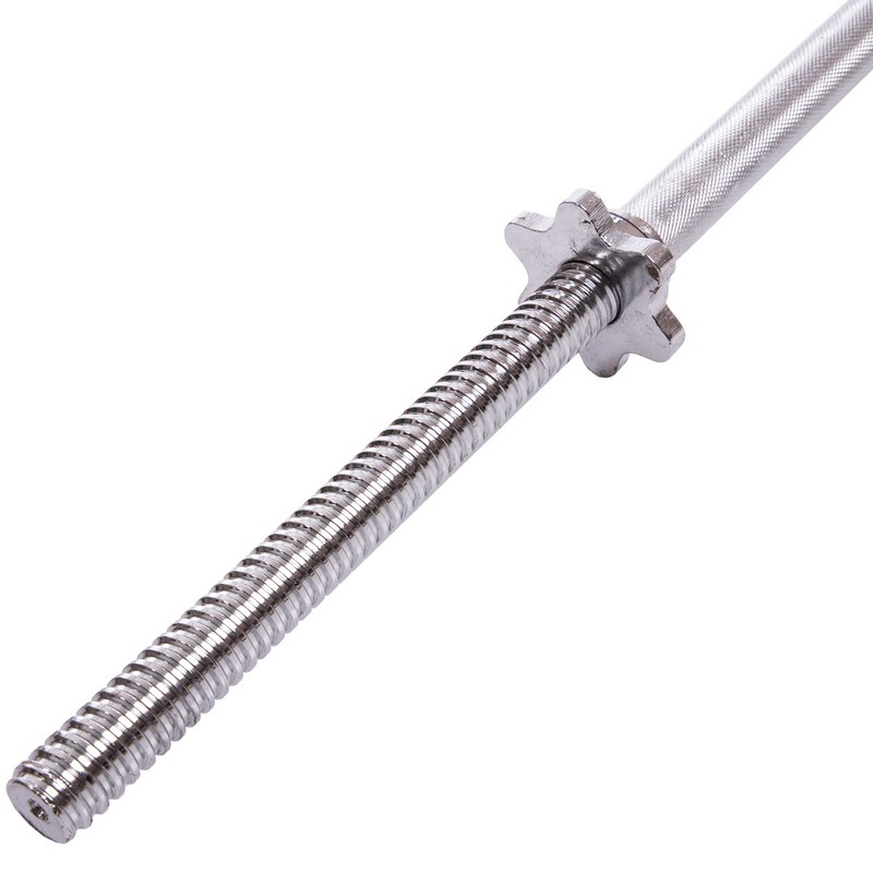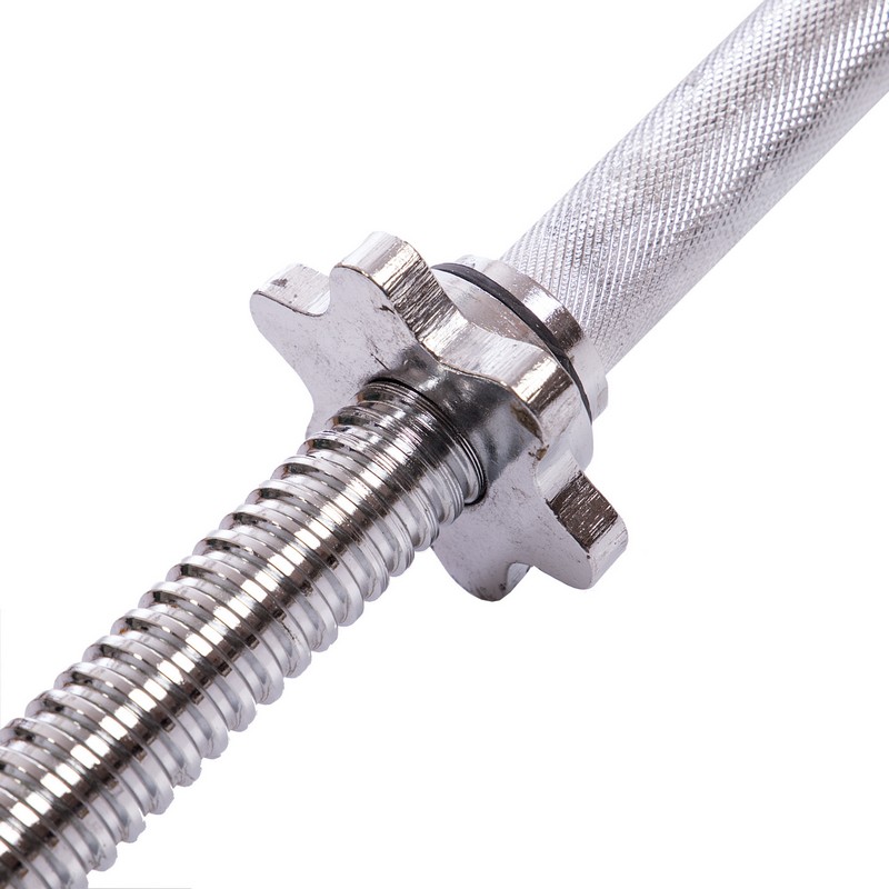 Для изготовления грифа используется высокоуглеродистая сталь промышленного класса, защищённая от ржавления хромированием. Чтобы обеспечить пользователю максимальный комфорт и безопасность, рабочая часть грифа покрыта мелкими насечками, которые предотвращают соскальзывание рук, гарантируя надёжность хвата, и в то же время не повреждают кожу ладоней. Весовые блины крепятся на посадочных втулках при помощи удобных винтовых замков (гайки Вейдера), которые обеспечивают им надёжную фиксацию и, при этом, позволяют быстро установить нужный вес.