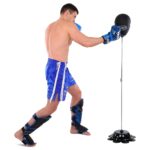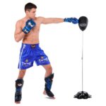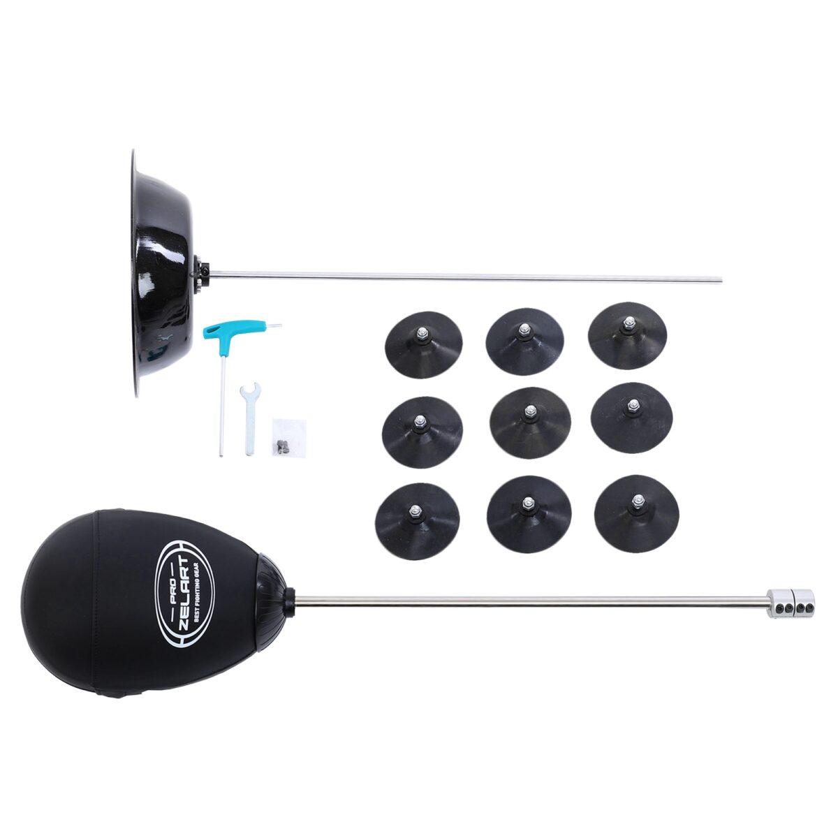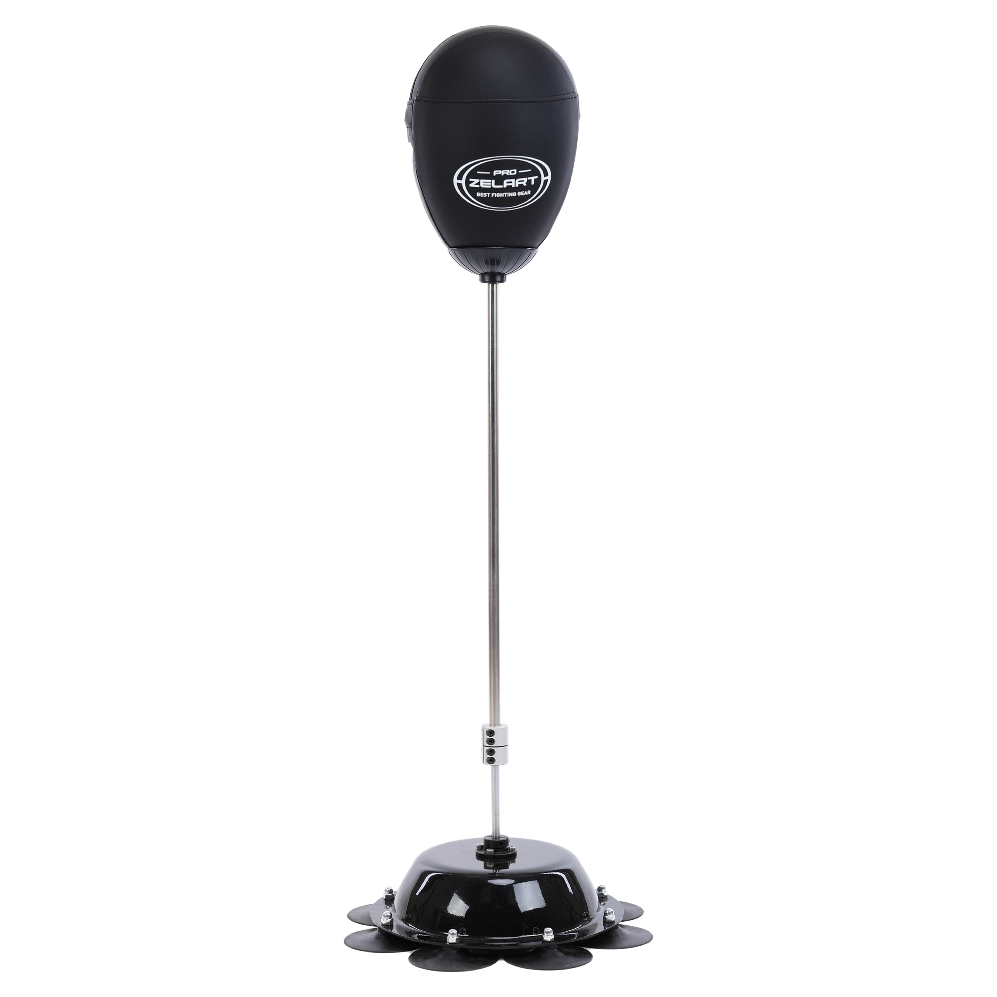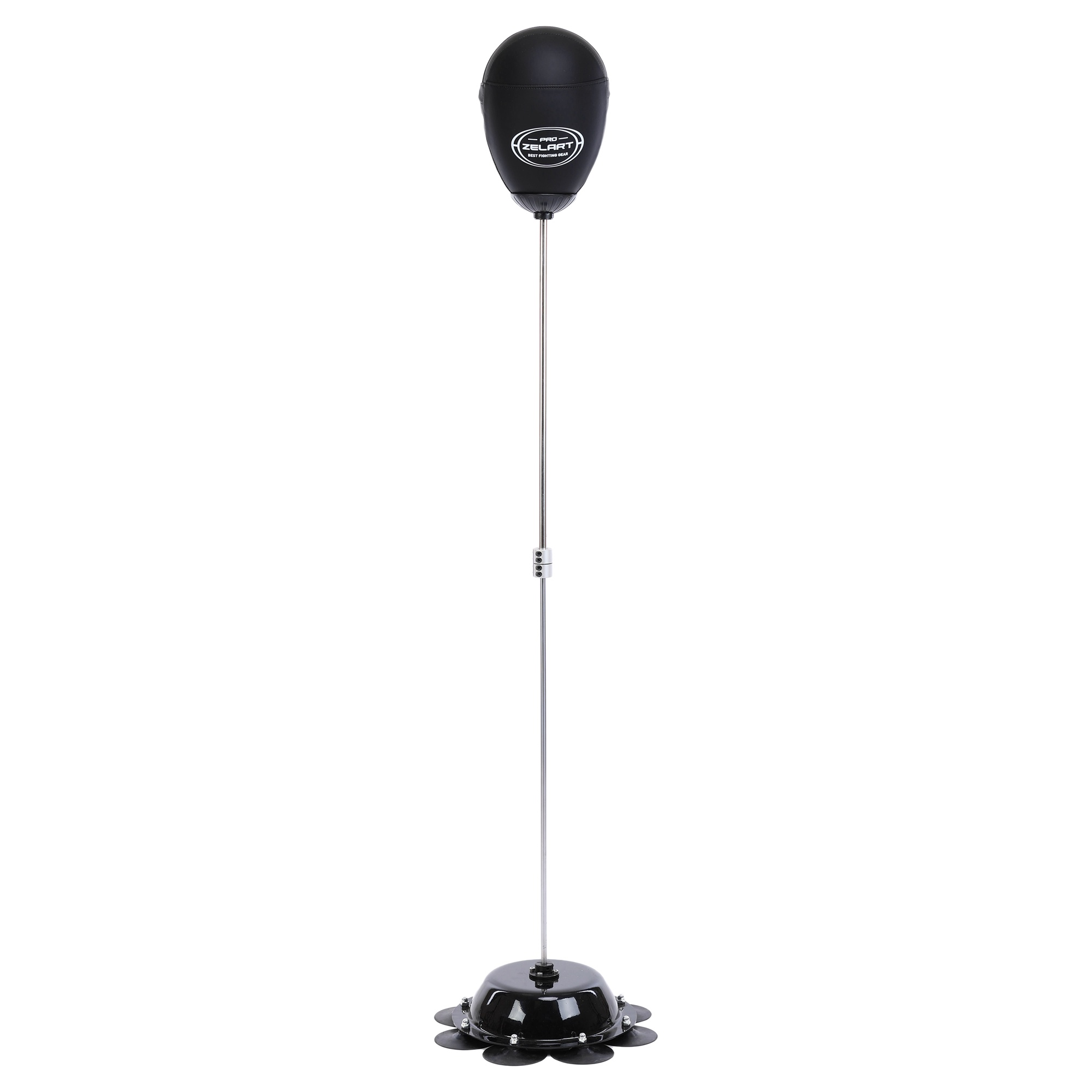 Комплект состоит из стойки, боксерской груши каплевидной формы и надежного основания на присосках. Быстрая сборка делает этот тренажер удобным и практичным вариантом, который можно транспортировать. Высота стойки регулируется от 95 до 150 см, круглое основание имеет высоту 7,5 см и диаметр — 27 см. Груша изготовлена из прочного и долговечного полиуретана и оптимизирована для высокоскоростных силовых тренировок.