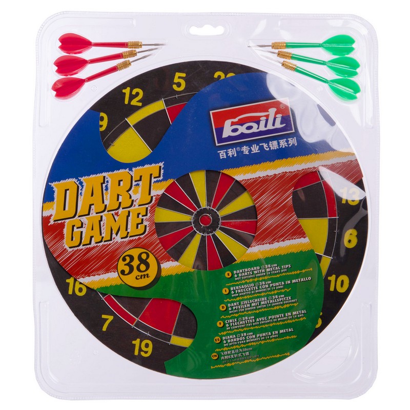 Мишень для игры в дартс с дротиками с острыми иглами можно использовать для любительских игр и развлечений. Для соревнований такой вариант не подходит из-за слишком маленького диаметра доски, который составляет всего лишь 38 см, что на целых 8 см меньше размеров классической мишени для профессионального дартса. Зато такой набор для игр отлично впишется в интерьер любого офиса или дома и поможет отвлечься от будничных проблем.