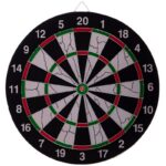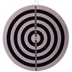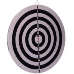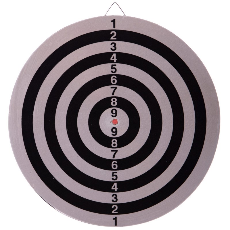 Мишень для игры в дартс изготовлена из прессованного картона с покрытием из флока для максимальной прочности и долговечности. Мишень от бренда Baili имеет удобное крепление на стену и двусторонний дизайн. Игрок сможет тренировать меткость, используя мишень с двумя разными типами игрового поля. Одно игровое поле, по правилам классического дартса, разделено на 20 секторов с помощью стальной проволоки с круглыми гранями. Цифры нанесены методом печати и имеют довольно большой размер, что позволяет хорошо рассмотреть их даже с расстояния. Помимо самой мишени, в набор входит шесть дротиков с хвостовиками из полиэтилена и наконечниками из стали. Мишень имеет диаметр 43 см, что несколько меньше размера профессиональных мишеней для дартса.