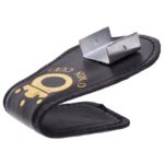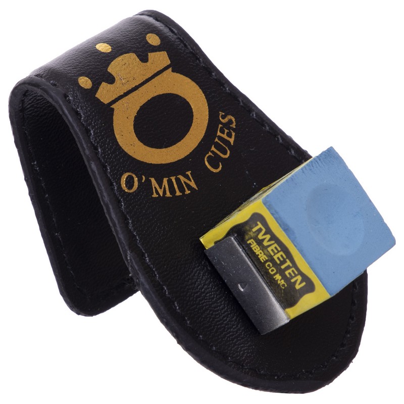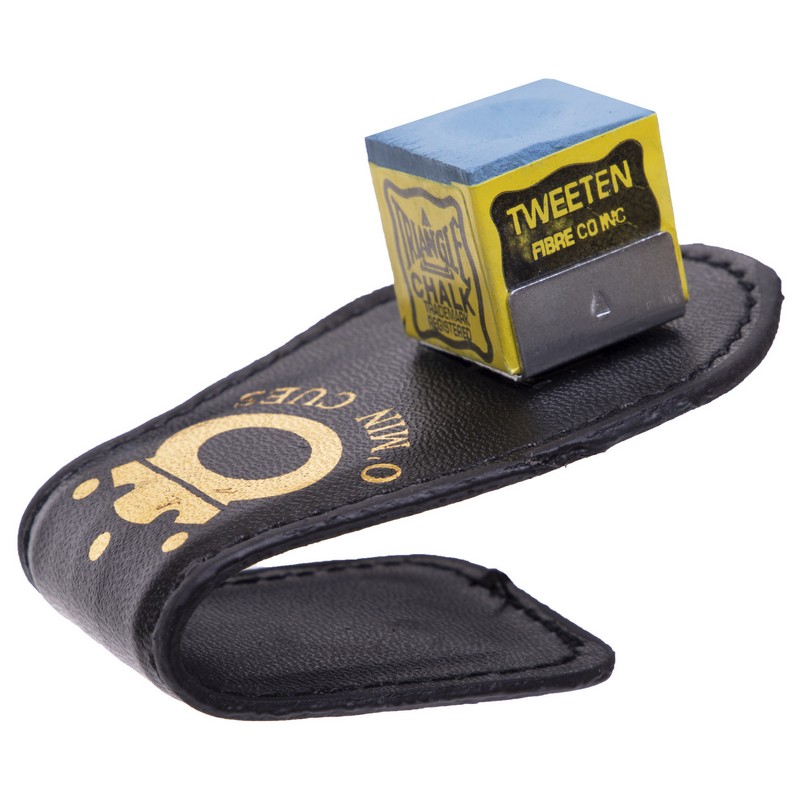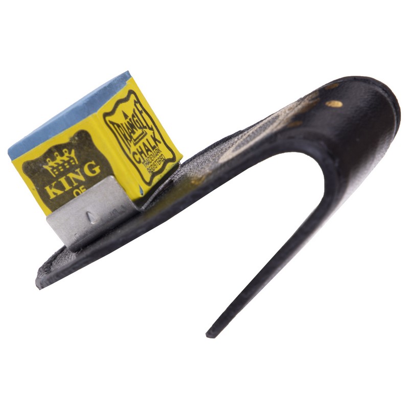 Держатель состоит из клипсы и металлической скобы. Металлическая скоба фиксируется на кубике мела, а клипса — на поясе. Крепление на пояс является одним из лучших вариантов. Изделие можно разместить в удобном месте, а благодаря компактному размеру оно не будет мешать во время игры. Крепление на пояс изготовлено из натуральной кожи. Прочная конструкция надёжно держится на поясе. Внутри располагается магнит, к которому металлическая скоба хорошо притягивается. Размер скобы учитывает стандартный размер мела для бильярда.