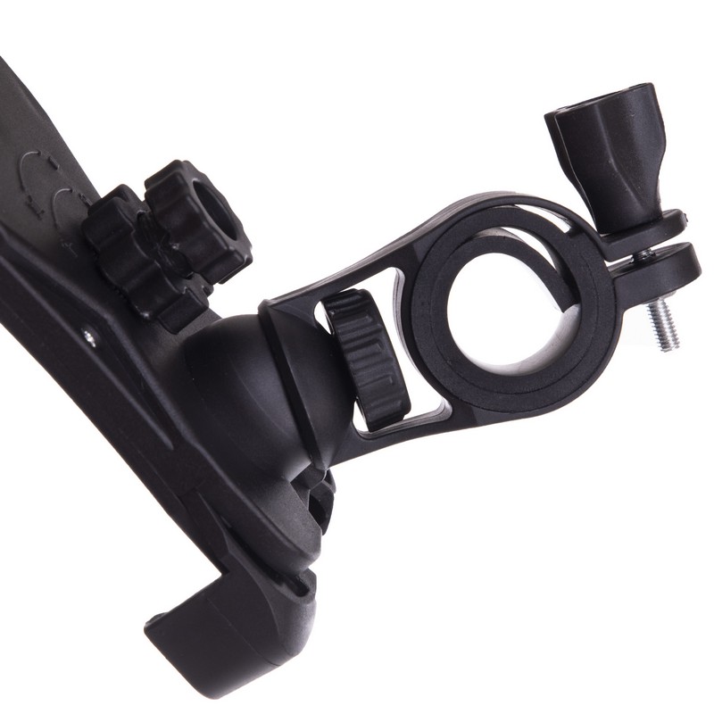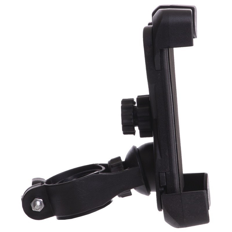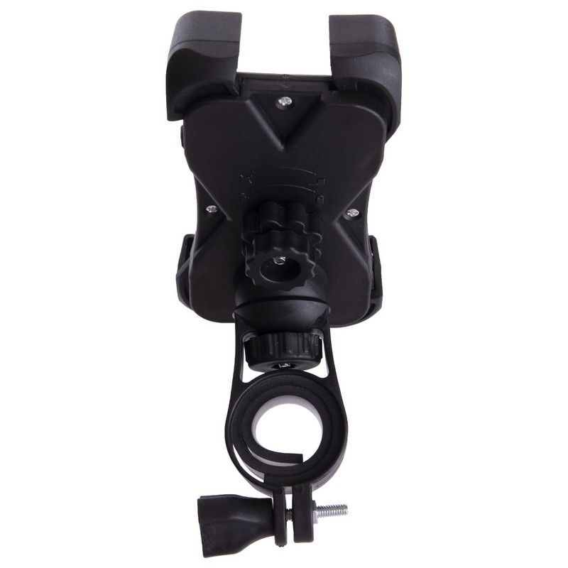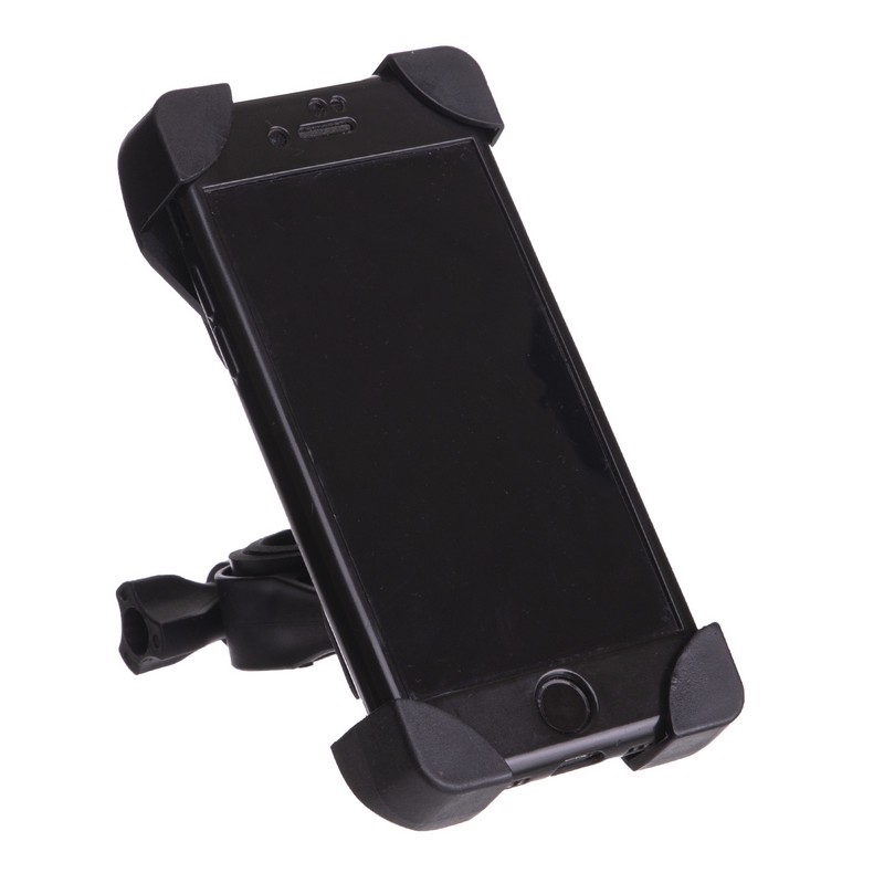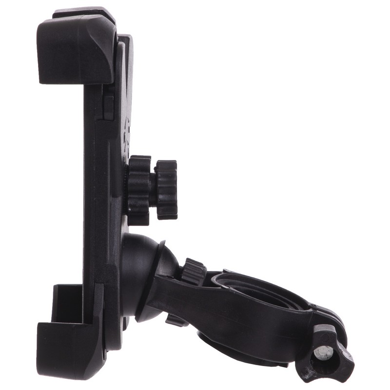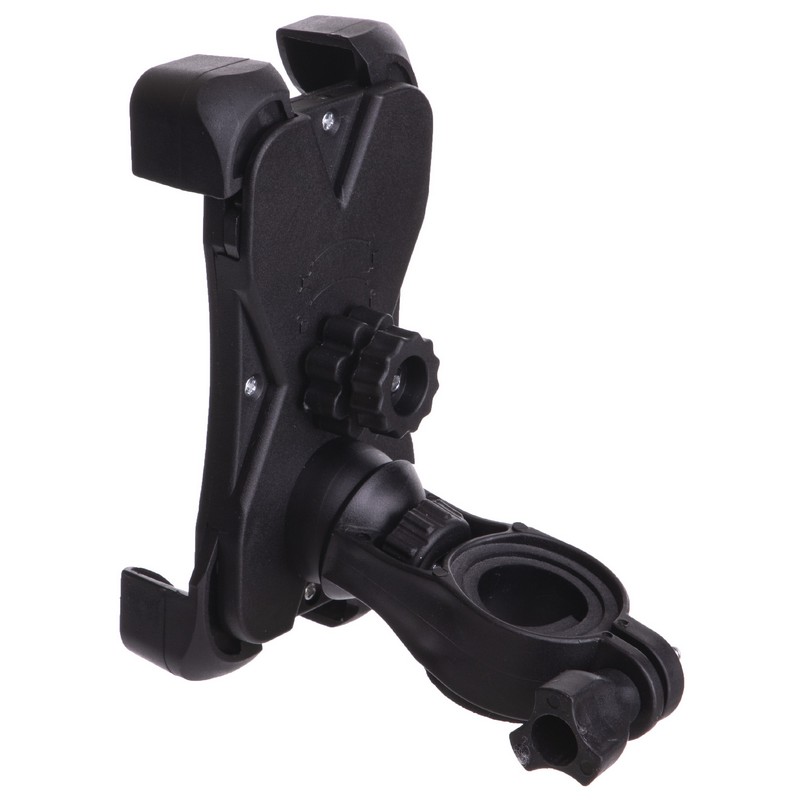 Держатель обеспечивает прочную и надежную фиксацию телефона на руле велосипеда или мотоцикла. Модель крепится с помощью винтового зажима и может использоваться на руле разного диаметра. Он прочно затягивается, не смещается и не падает во время езды по неровной дороге или пересеченной местности. Шарнирное соединение позволяет регулировать положение смартфона, обеспечивая хороший обзор в условиях любого освещения. Фиксация смартфона осуществляется с помощью четырех зацепов, совместимых с устройствами разного размера.