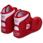 Нескользящая подошва, придает борцу устойчивости на ринге. Центральная часть обуви, включая язычок, выполнена из пористой синтетики, которая прекрасно пропускает воздух и отводит пот. Весь остальной «верх» сшит из полиуретана и полиэстера, поэтому обувь долго носится, не теряя своих качеств. Прочность посадке обеспечивает шнуровка.