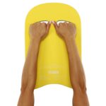 Оптимальные размеры доски (42х28.5х3.2 см) позволяют удобно держать ее одной или двумя руками. Продуманная форма с закругленными краями способствует безопасности во время занятий. Специальные отверстия для рук обеспечивают удобный и надежный захват. Они позволяют пловцам уверенно держаться за доску, не позволяя ей скользить в руках.