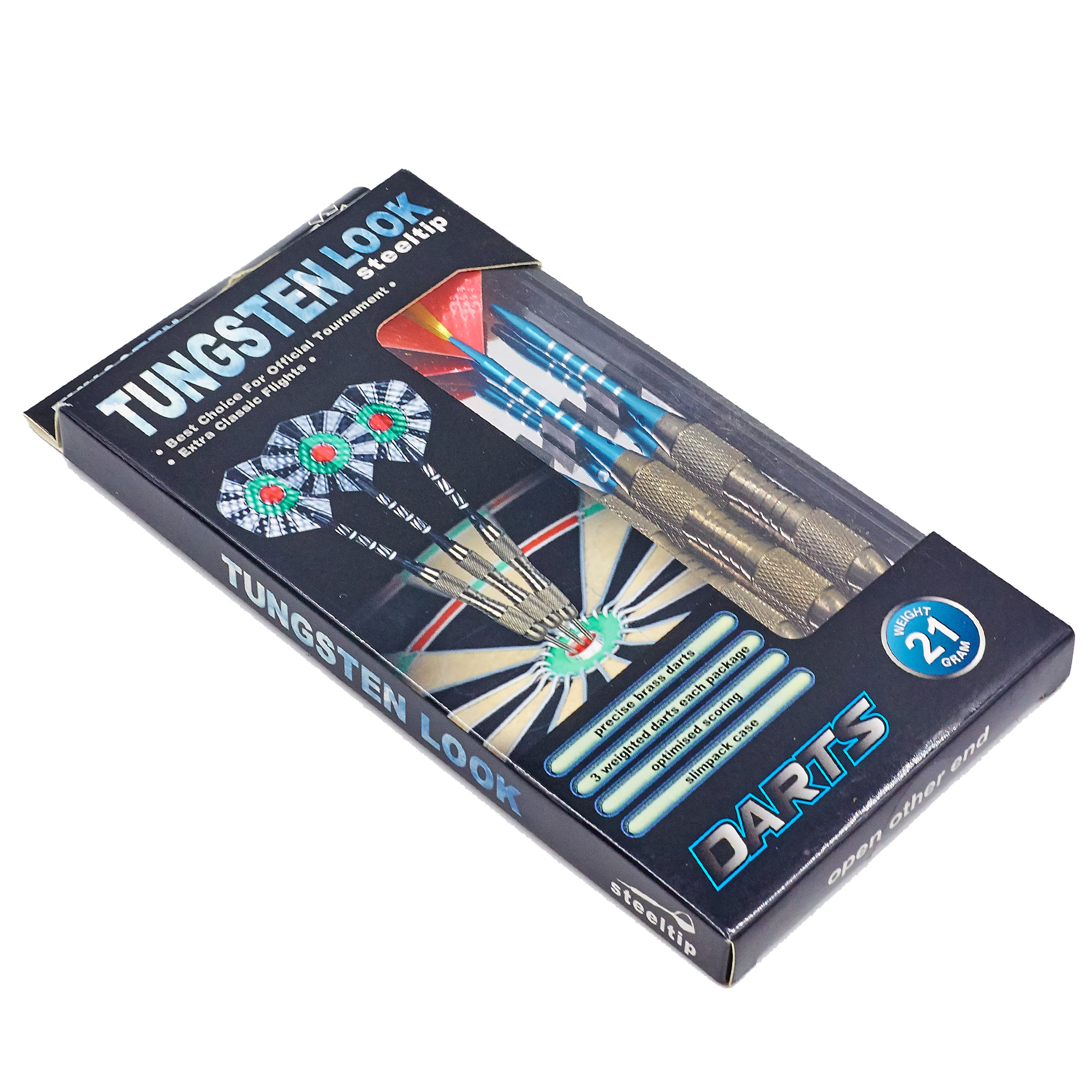 В основе комплекта Baili три вольфрамовых дротика каплевидной формы. Вес каждого изделия составляет 21 г, что является оптимальным для активной игры с точными бросками. Кроме того, в набор входят 3 хвостика, 6 вариантов оперения и качественный футляр.