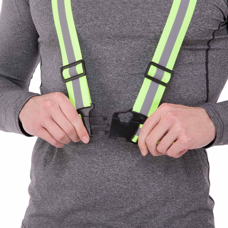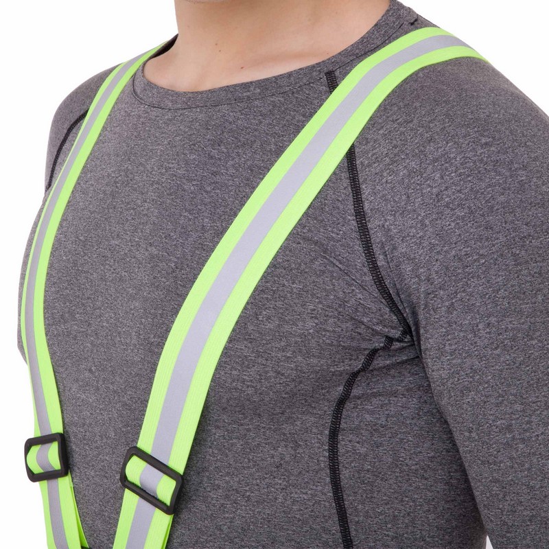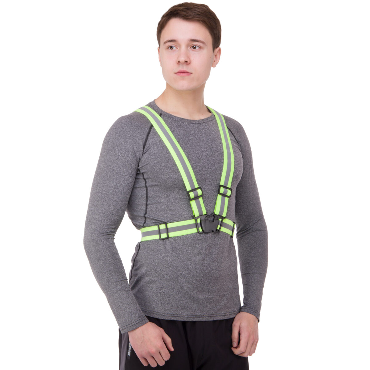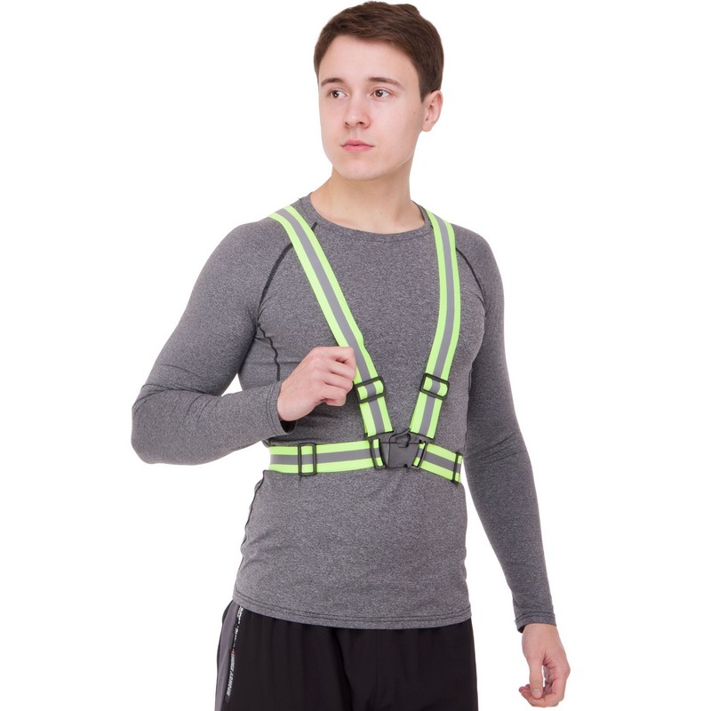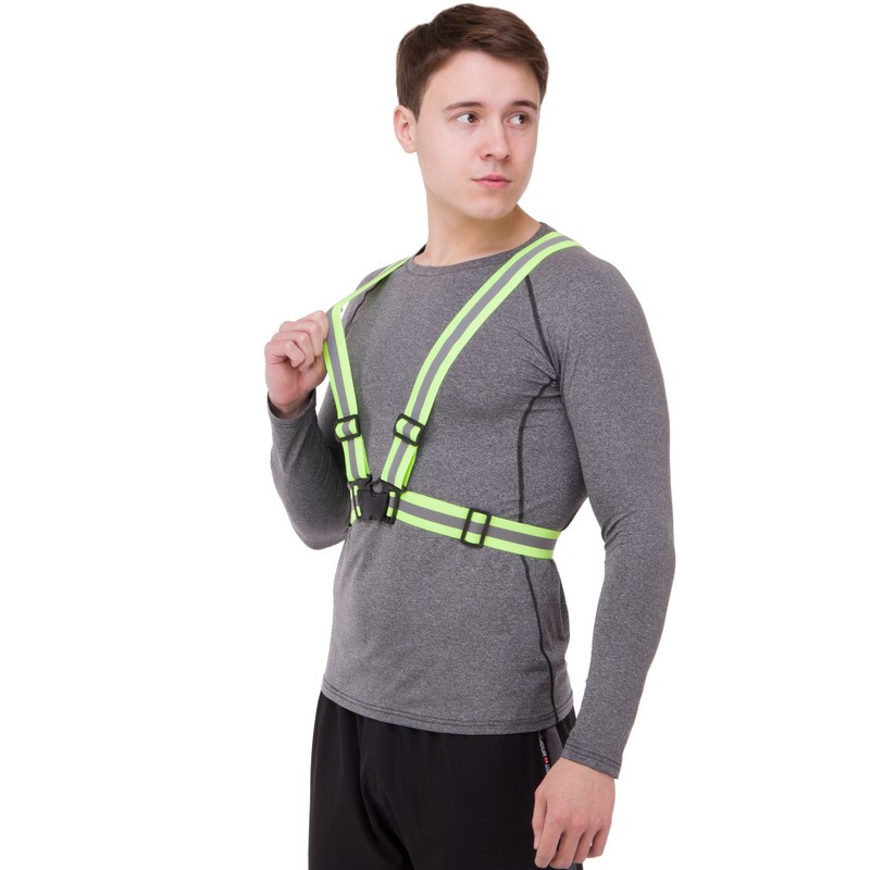 Светоотражающий жилет позволяет спортсмену оставаться заметным в темное время суток. Жилет изготовлен из полиэстера. Окрашен краской салатового цвета. Он отражает свет автомобильных фар, уменьшает вероятность ДТП из-за плохой видимости в ночное время.