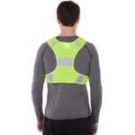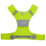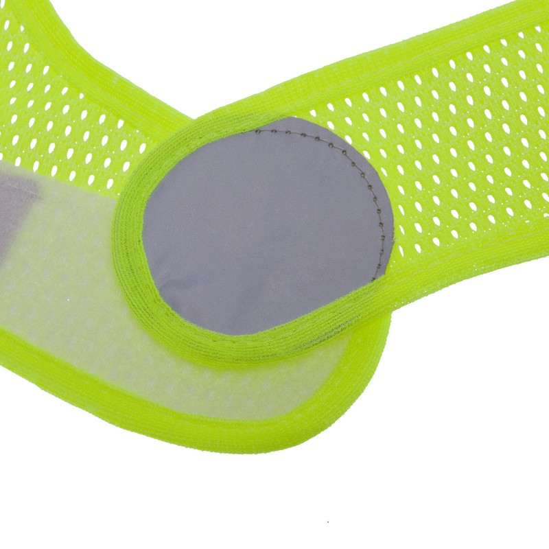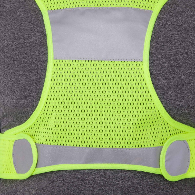 Жилет изготовлен из полиэстера. Сетчатая синтетическая ткань хорошо дышит. Не создает препятствий нормальному воздухообмену. Поэтому бегать в таком жителе удобно даже в жаркое время года. На корпусе жилет фиксируется с помощью двух липучек. Благодаря им ширину жилета можно подогнать под пользователя индивидуально. Светоотражающие ставки расположены на передней и задней поверхностях жилета.