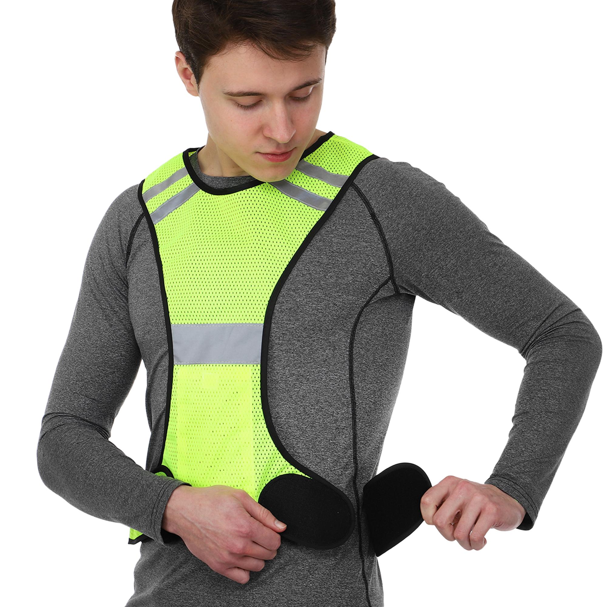 Для бега в темное время суток спортсмены могут использовать светоотражающий жилет со встроенными мерцающими светодиодами. На жилет нанесена светоотражающая краска, которая позволит быстро заметить на дороге бегуна.