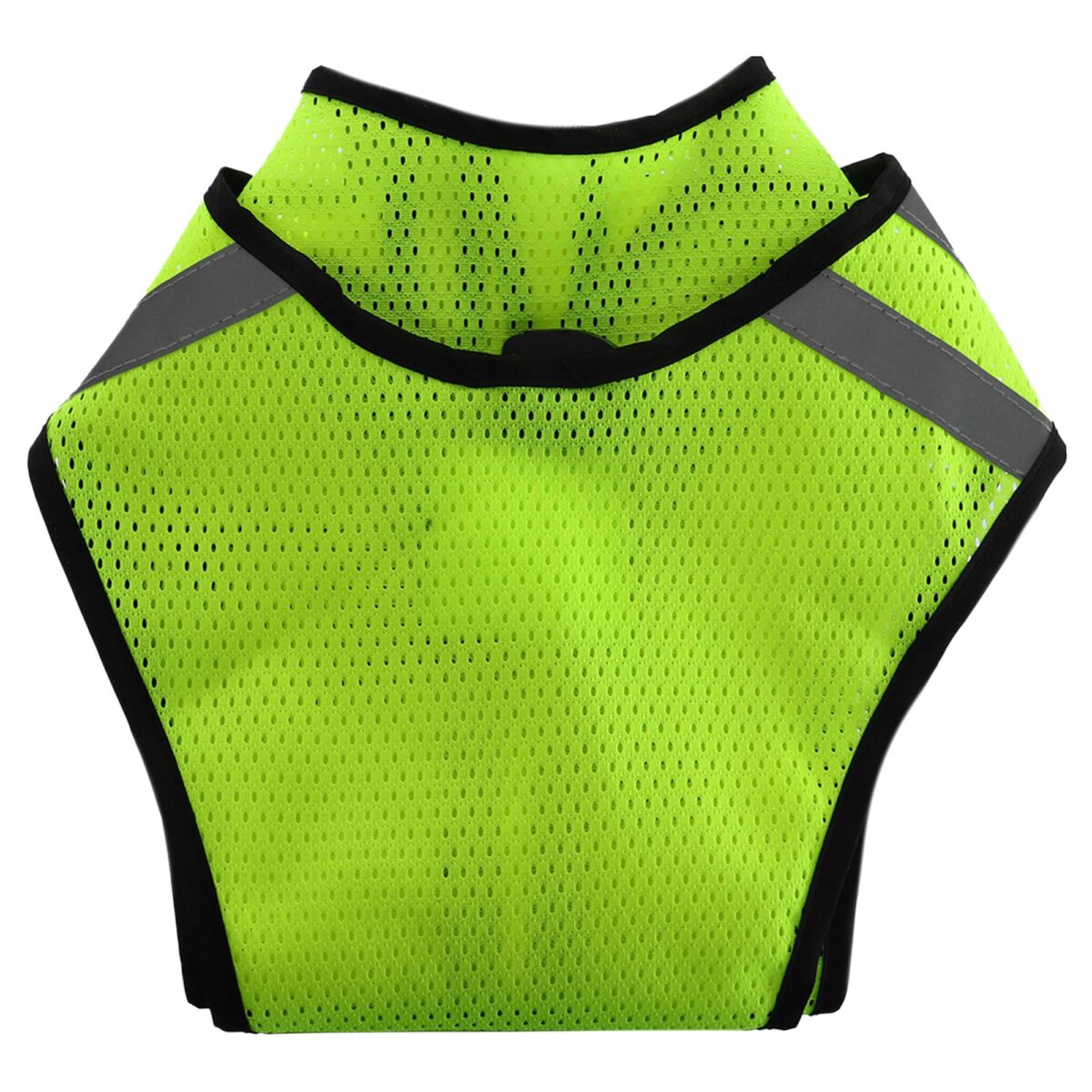 Аксессуар изготовлен из сетчатой синтетической ткани, которая не мешает воздухообмену и не парит тело. Размер жилета регулируется с помощью липучек.