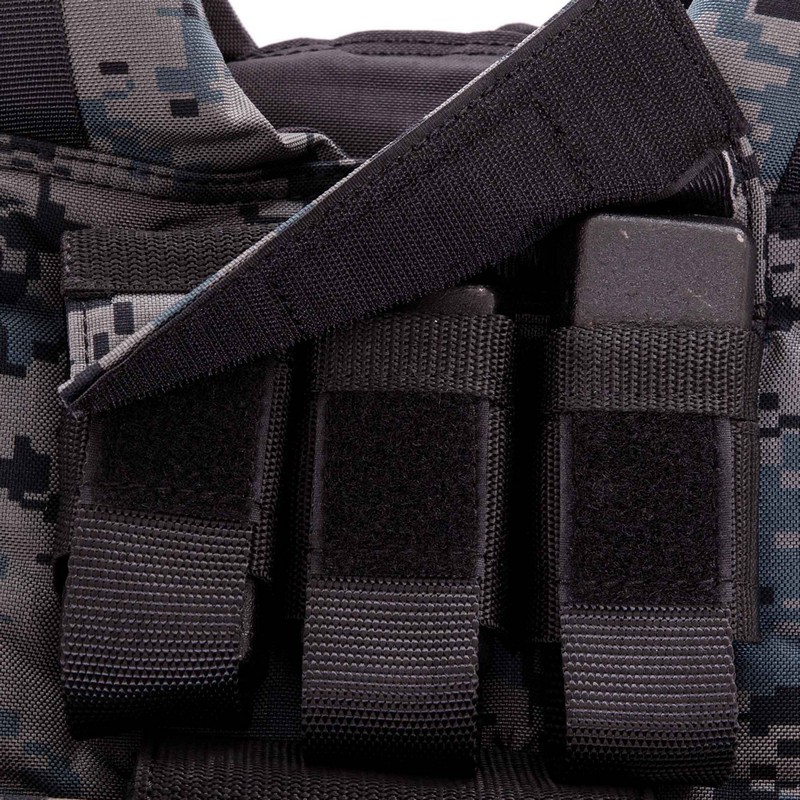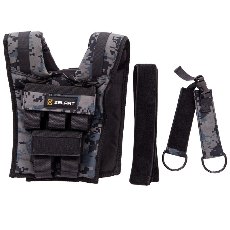 Жилет-утяжелитель WEIGHT VEST имеет регулируемый вес и комплектуется десятью грузами по 1 кг каждый. Максимальный вес жилета составляет 10 кг. В качестве грузов используются металлические бруски, которые вставляются в специальные карманы на жилете. Карманы закрываются клапанами на липучке, что позволяет избежать случайного выпадения груза из посадочного места.
