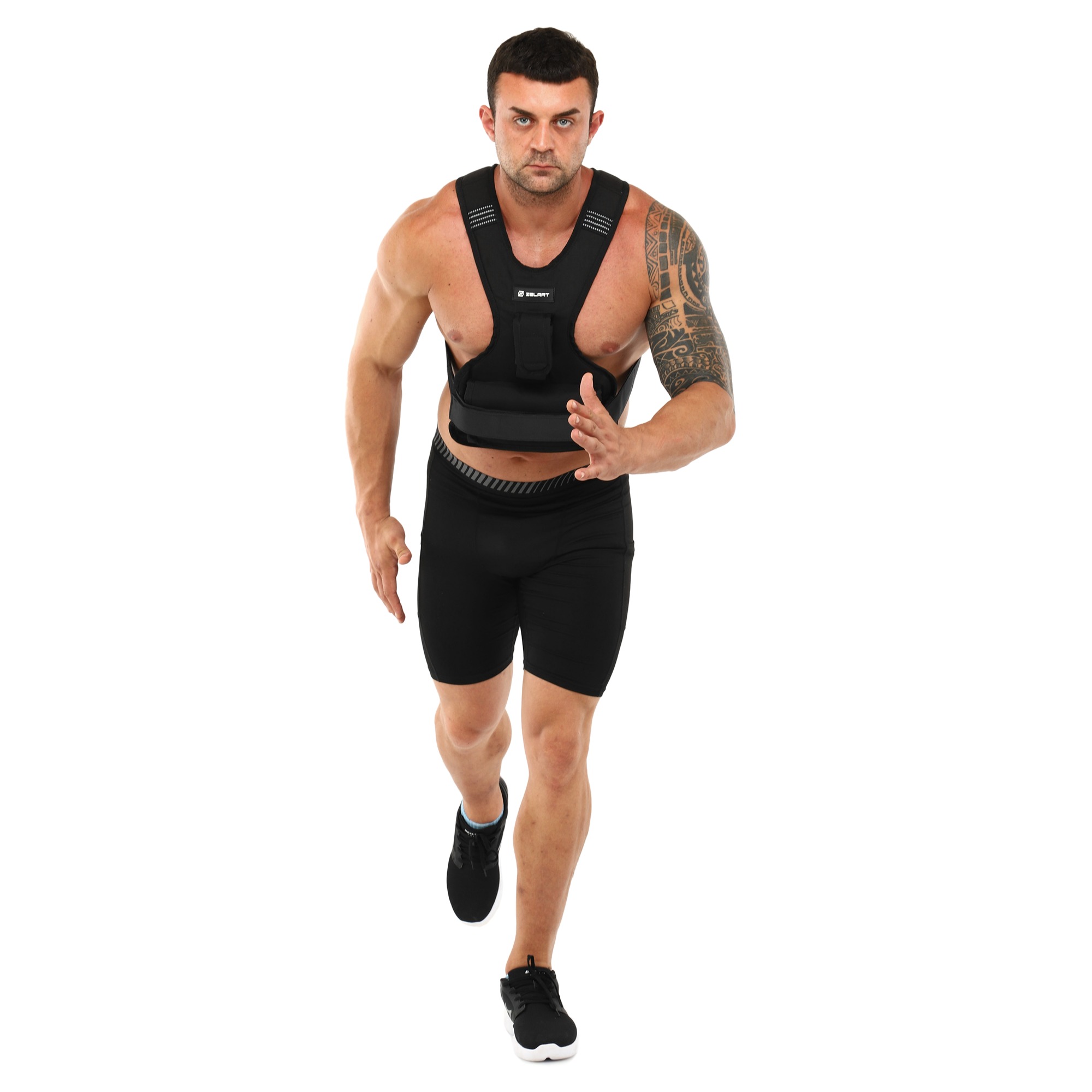 Жилет-утяжелитель можно использовать для выполнения воркаут элементов или кроссфит упражнений. Также он подойдёт для бега и ходьбы. На плечевых лямках спереди расположены светоотражающие элементы.