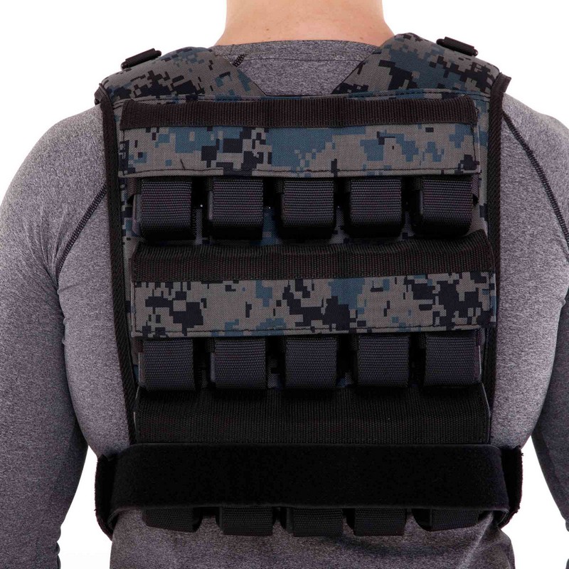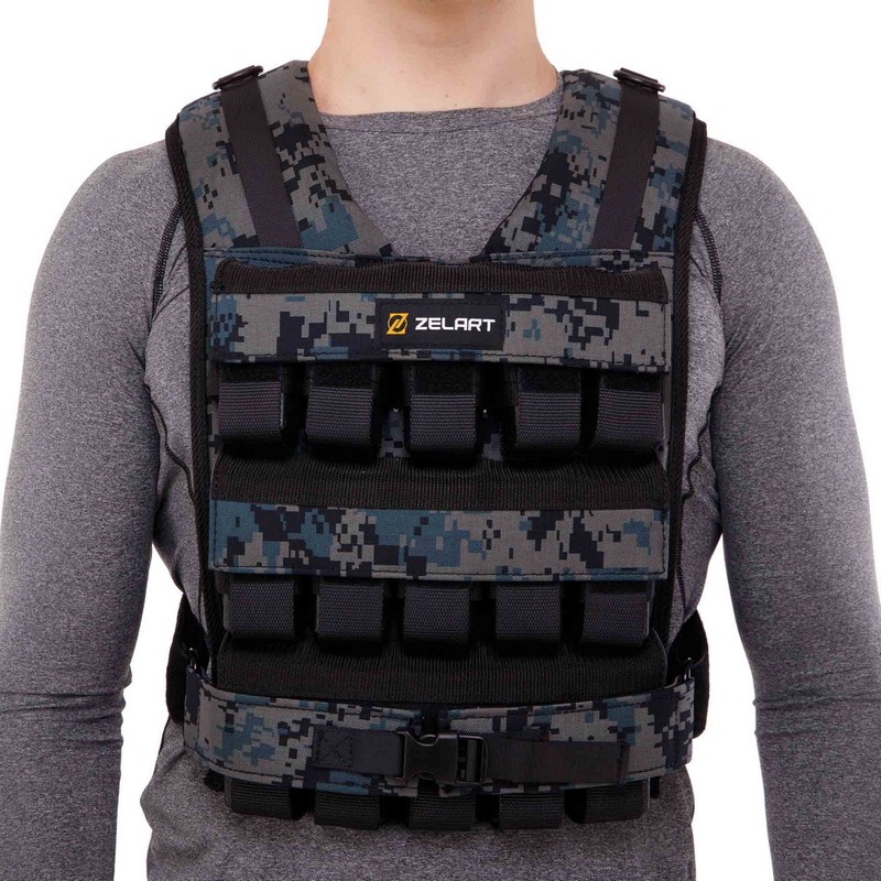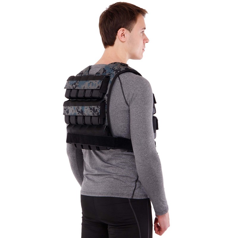 WEIGHT VEST — жилет-утяжелитель с впечатляющим максимальным весом отягощения — 30 кг. Минимальный вес утяжелителя составляет 1 кг. Жилет обеспечивает равномерное распределение нагрузки на позвоночник благодаря размещению грузов на спине и груди. Грузы выполнены в виде металлических брусков весом 1 кг. Пользователь самостоятельно выбирает, какое количество грузов будет установлено в жилет. Для фиксации грузов используются клапаны на липучке. Для каждого груза предусмотрено отдельное посадочное место.