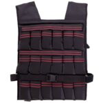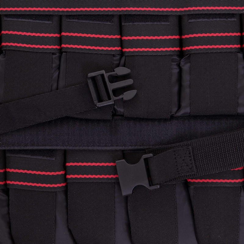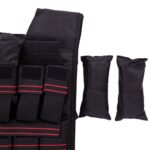 Жилет удобно фиксируется на теле с помощью пластиковой полуавтоматической застёжки, которая позволяет быстро снимать и надевать утяжелитель. Карманы для мешочков с песком закрываются на липучку, что предотвращает их выпадение во время интенсивных тренировок.