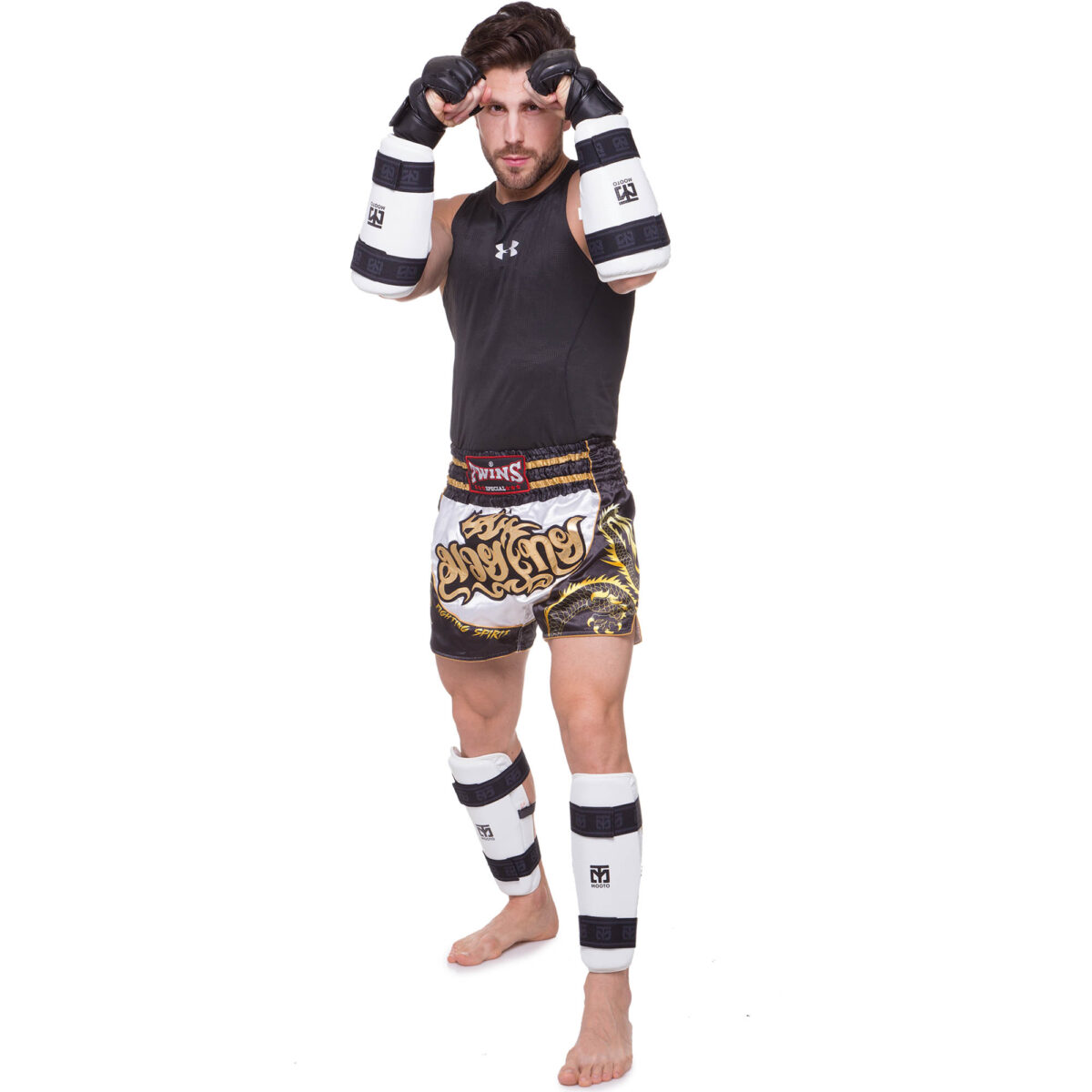 Щитки для голени и предплечья выполнены из современного материала полиуретан – он отлично переносит механические воздействия, не рвется и не лопается даже после многократных тренировок. За смягчение ударов отвечает пенный наполнитель, плотный и упругий.