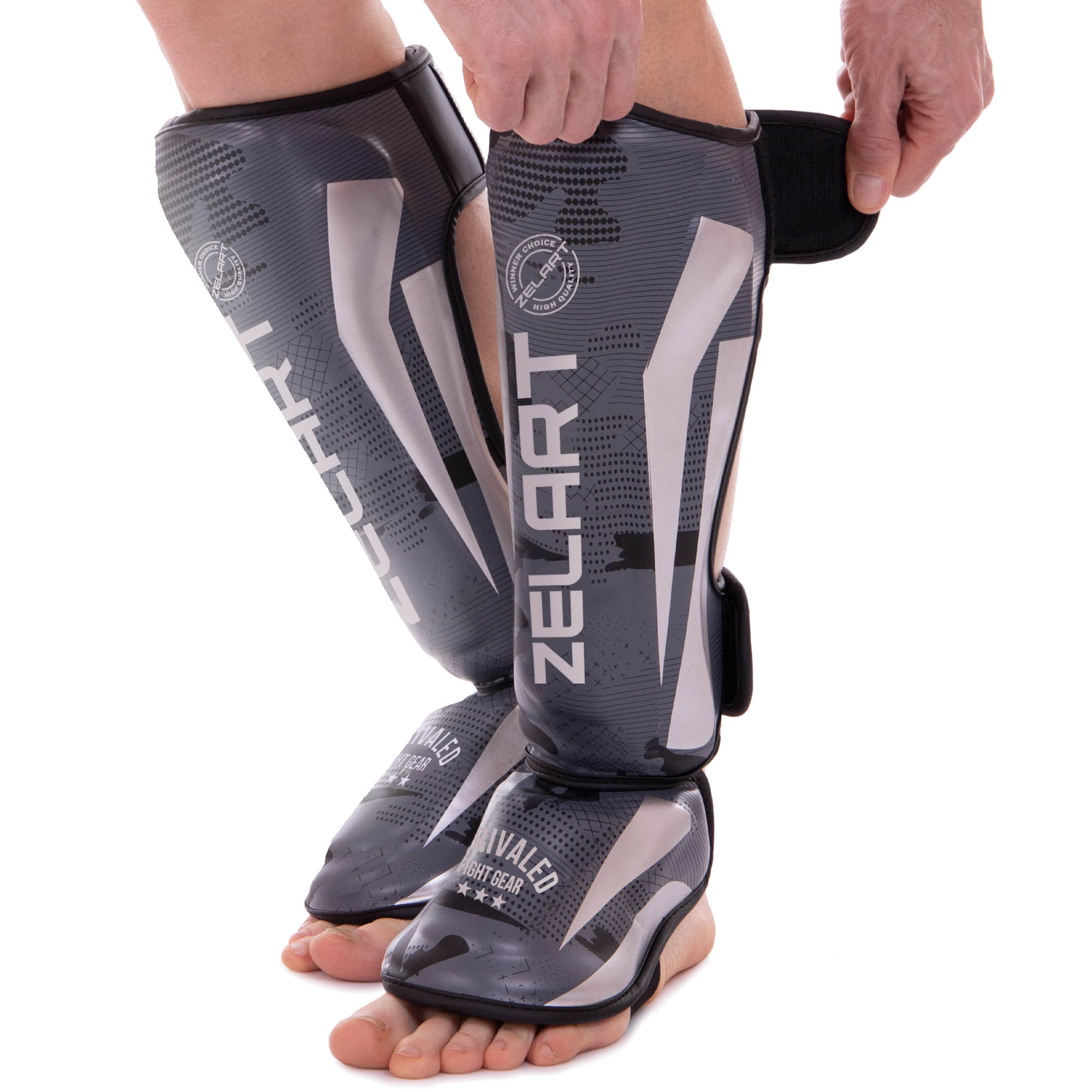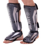 Защита голени и стопы — важный элемент экипировки для единоборств. Аксессуар выдерживает ударную нагрузку и защищает конечности от серьезных травм. Защита состоит из двух частей — щитков и футов. Щитки закрывают голени, а футы — ступни и пальцы.