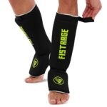Защита для занятий единоборствами FISTRAGE выполнена в виде эластичных гетр с накладкой на стопу. Она плотно облегает ногу спортсмена и, благодаря наличию амортизирующего наполнителя, защищает голень и стопу от травм и повреждений.