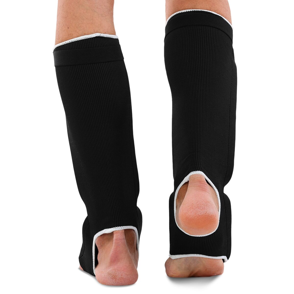 Экипировка предназначена для защиты голени и стопы спортсмена во время отработки ударов ногами. Подходит для занятий со спарринг-партнером или снарядом и используется в таких видах спорта: карате, тайский бокс и тхэквондо. Защита обеспечивает компрессионное воздействие на мышцы и ткани ног, поглощает удары и позволяет спортсменам совершенствовать технику нанесения удара. Подходит взрослым и детям.